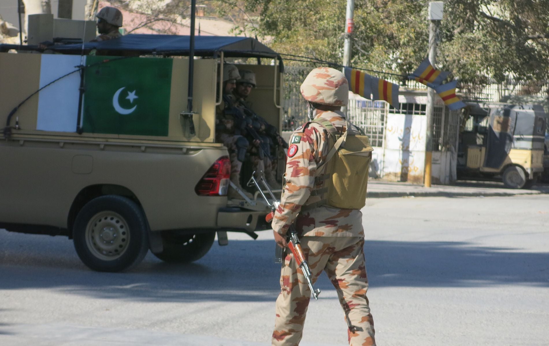 Σύμφωνα με τον υφυπουργό Εσωτερικών του Πακιστάν, Ταλάλ Τσόντρι, ένοπλοι μεταμφιεσμένοι σε πολίτες εισέβαλαν το Σάββατο σε νοσοκομεία, σχολεία, τράπεζες και αγορές, ανοίγοντας πυρ αδιακρίτως. Όπως ανέφερε, σε αρκετές περιπτώσεις οι επιτιθέμενοι χρησιμοποίησαν αμάχους ως ανθρώπινες ασπίδες.
