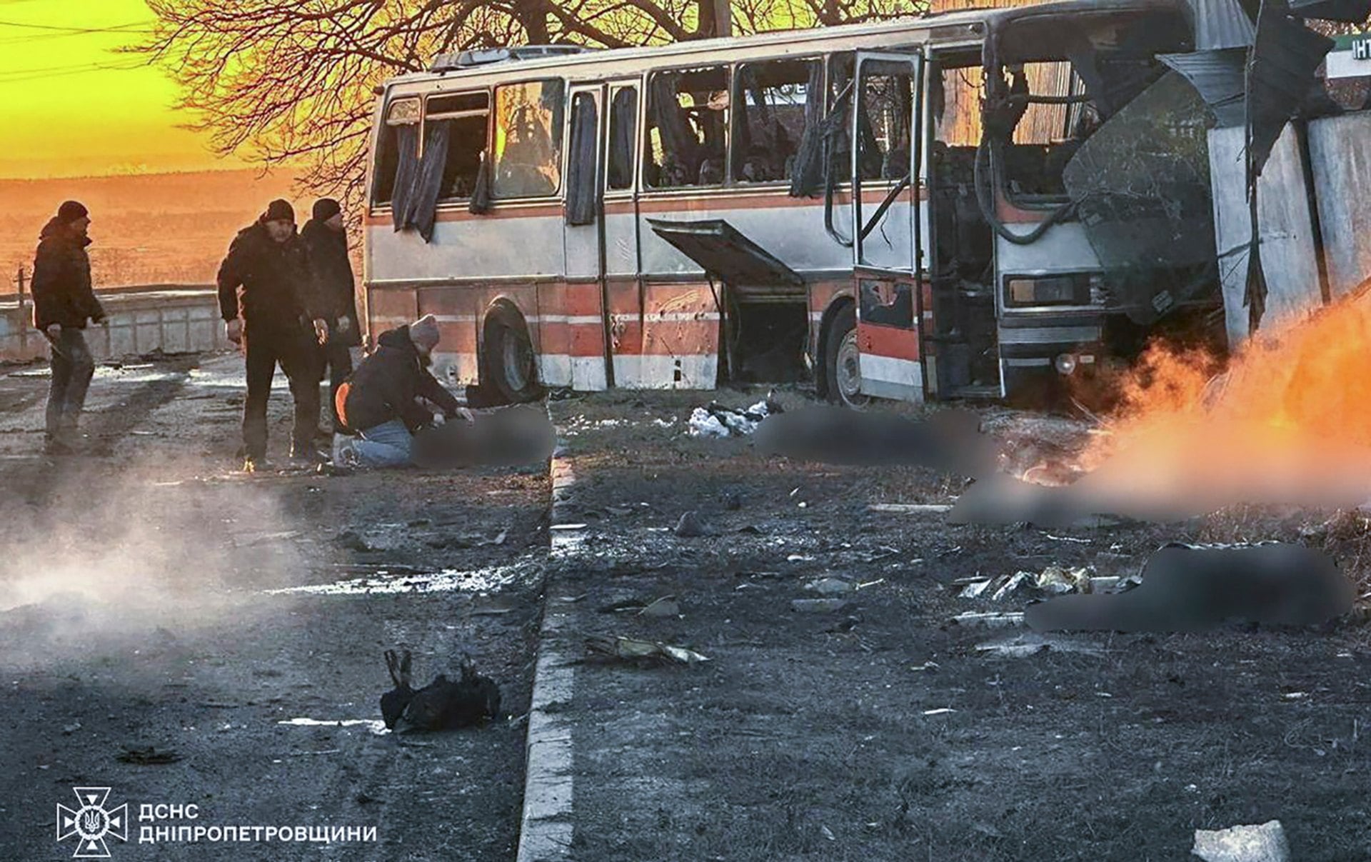 Λεωφορείο στο οποίο επέβαιναν εργαζόμενοι σε μεταλλευτικές εγκαταστάσεις της περιφέρειας Ντνιπροπετρόφσκ, στη νοτιοανατολική Ουκρανία, δέχτηκε επίθεση από ένα μη επανδρωμένο αεροσκάφος, με αποτέλεσμα να σκοτωθούν 15 άνθρωποι.
