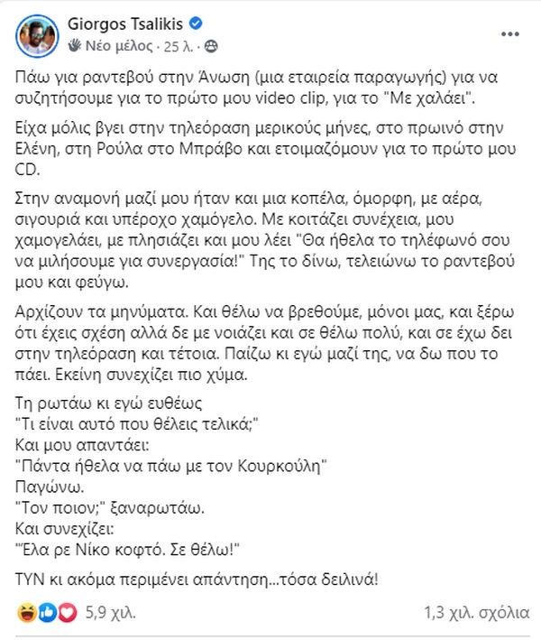 Μια επική στιγμή από το παρελθόν του μοιράστηκε ο Γιώργος Τσαλίκης με τα μέλη της δημοφιλούς σελίδας του Facebook «Thank you Next».