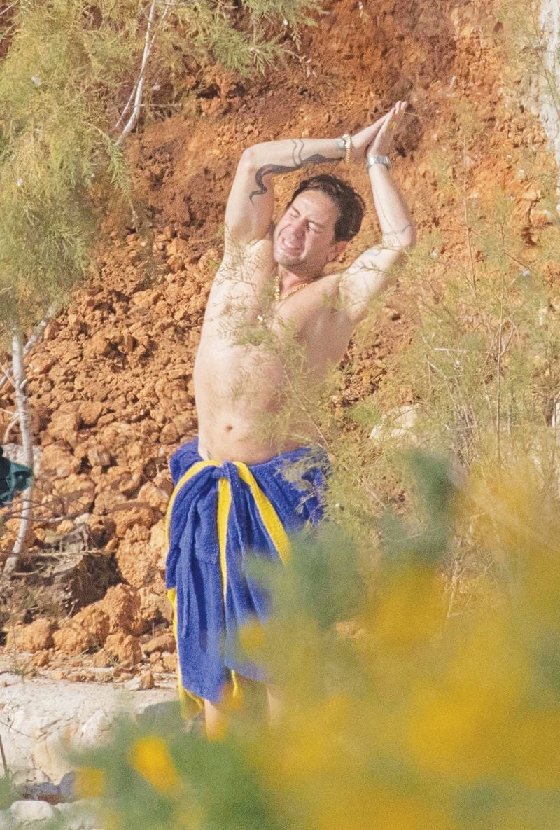 Πρόσφατα, λοιπόν, που είχε και ήλιο, οι παπαράτσι τούς έστησαν καρτέρι σε παραλία των νοτίων προαστίων και τους απαθανάτισαν… εν δράσει. Ο αγαπημένος τραγουδιστής με το που βγήκε από τη θάλασσα φόρεσε αμέσως το μπουρνούζι του και μόλις στέγνωσε, έκανε και μερικές ασκήσεις γιόγκα για να… ισιώσει το κορμί.