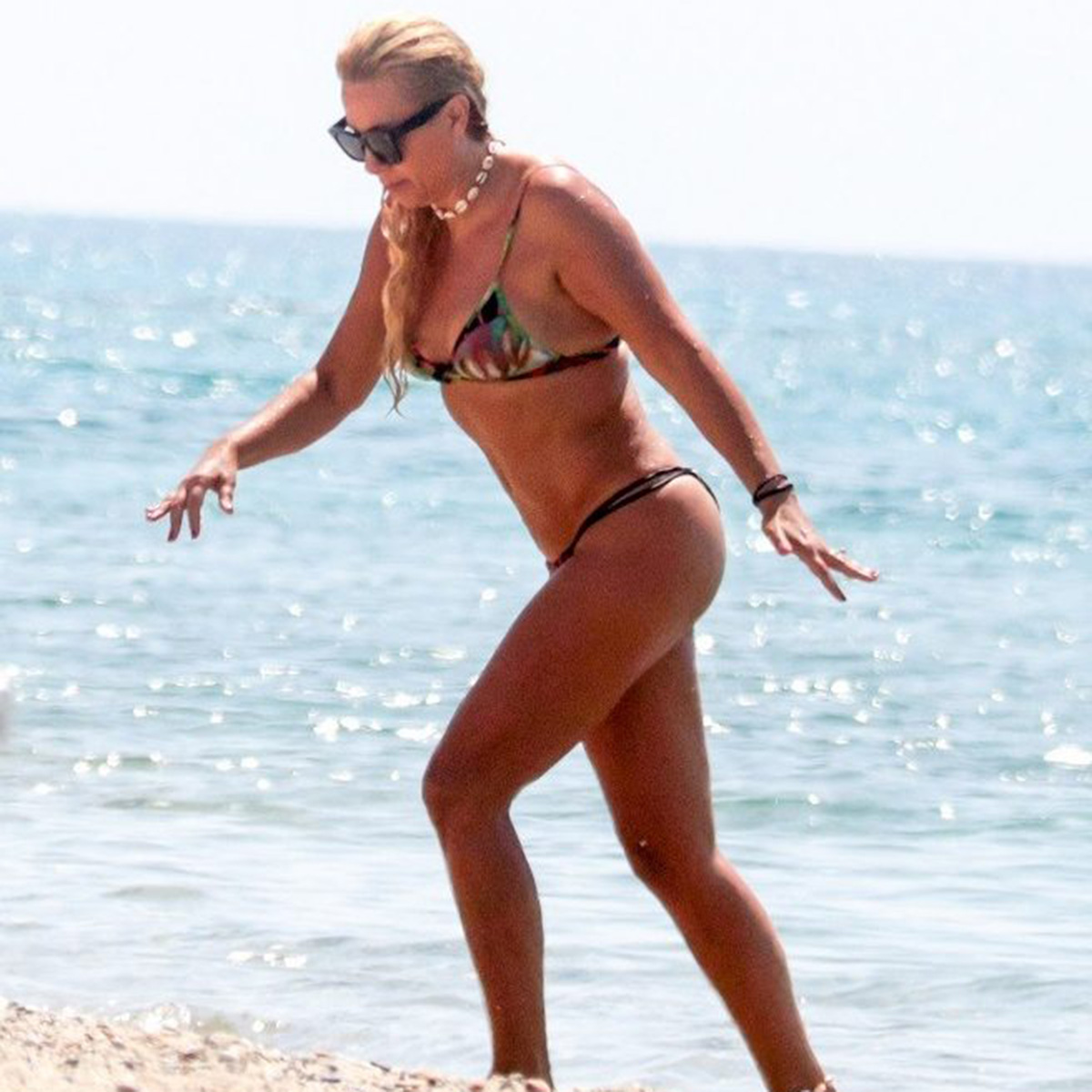 Ο φωτογραφικός φακός τους συνέλαβε να κάνουν «παιχνιδάκια» στο νερό, ενώ απαρατήρητο δεν πέρασε και το μικροσκοπικό μπικίνι της Γωγώς το οποίο αναδείκνυε το καλλίγραμμο και γυμνασμένο σώμα της.