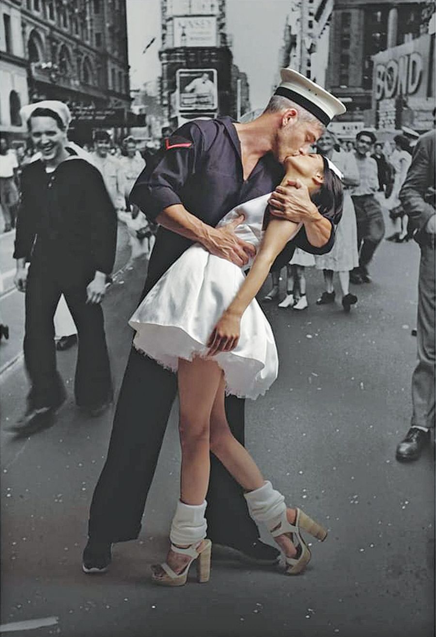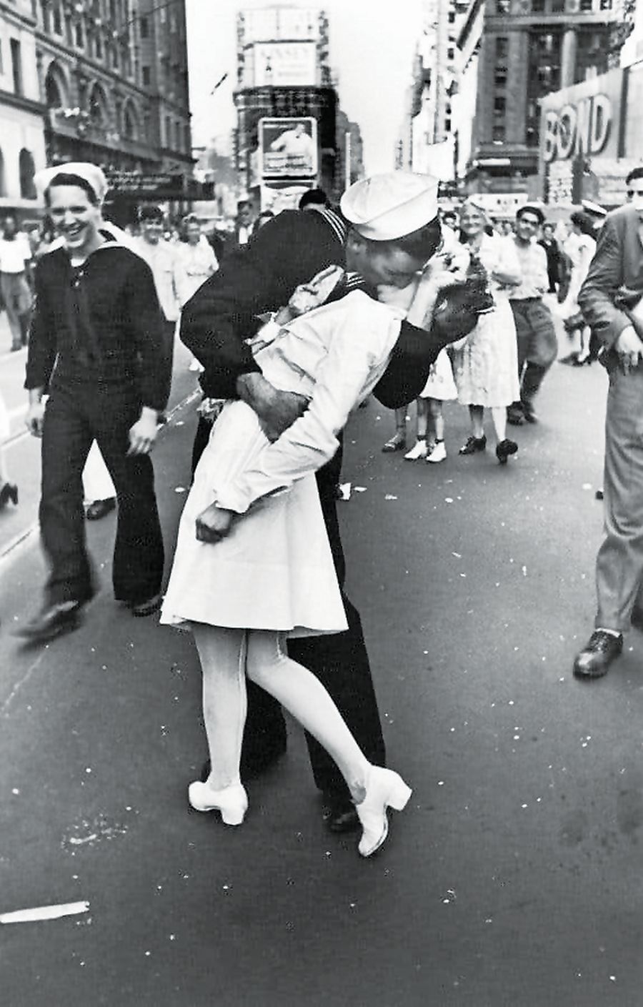 Πρόκειται για το θρυλικό ασπρόμαυρο «κλικ» που τράβηξε ο Αμερικανός φωτορεπόρτερ Αλφρεντ Αϊζενστατ στις 14 Αυγούστου 1945, κατά τη διάρκεια των πανηγυρισμών στη Νέα Υόρκη για την παράδοση της Ιαπωνίας, γεγονός που σηματοδότησε επί της ουσίας και το τέλος του πολέμου.