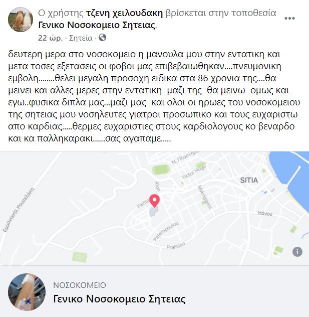 Η Τζένη Χειλουδάκη που είναι αρκετά ενεργή στα social media, ενημέρωσε τους διαδικτυακούς της φίλους για την περιπέτεια υγείας της μητέρας της γράφοντας χαρακτηριστικά: «Δεύτερη μέρα στο νοσοκομείο, η μάνουλα μου στην εντατική και μετά τόσες εξετάσεις οι φόβοι μας επιβεβαιώθηκαν….πνευμονική εμβολή……. θέλει μεγάλη προσοχή ειδικά στα 86 χρόνια της….θα μείνει και άλλες μέρες στην εντατική, μαζί της θα μείνω όμως και εγώ.. φυσικά δίπλα μας…μαζί μας και όλοι οι ήρωες του νοσοκομείου της Σητείας μου. Νοσηλευτές, γιατροί, προσωπικό και τους ευχαριστώ από καρδιάς…..θερμές ευχαριστίες στους καρδιολόγους κο Βεναρδο και κα παλληκαράκι……σας αγαπάμε…..»