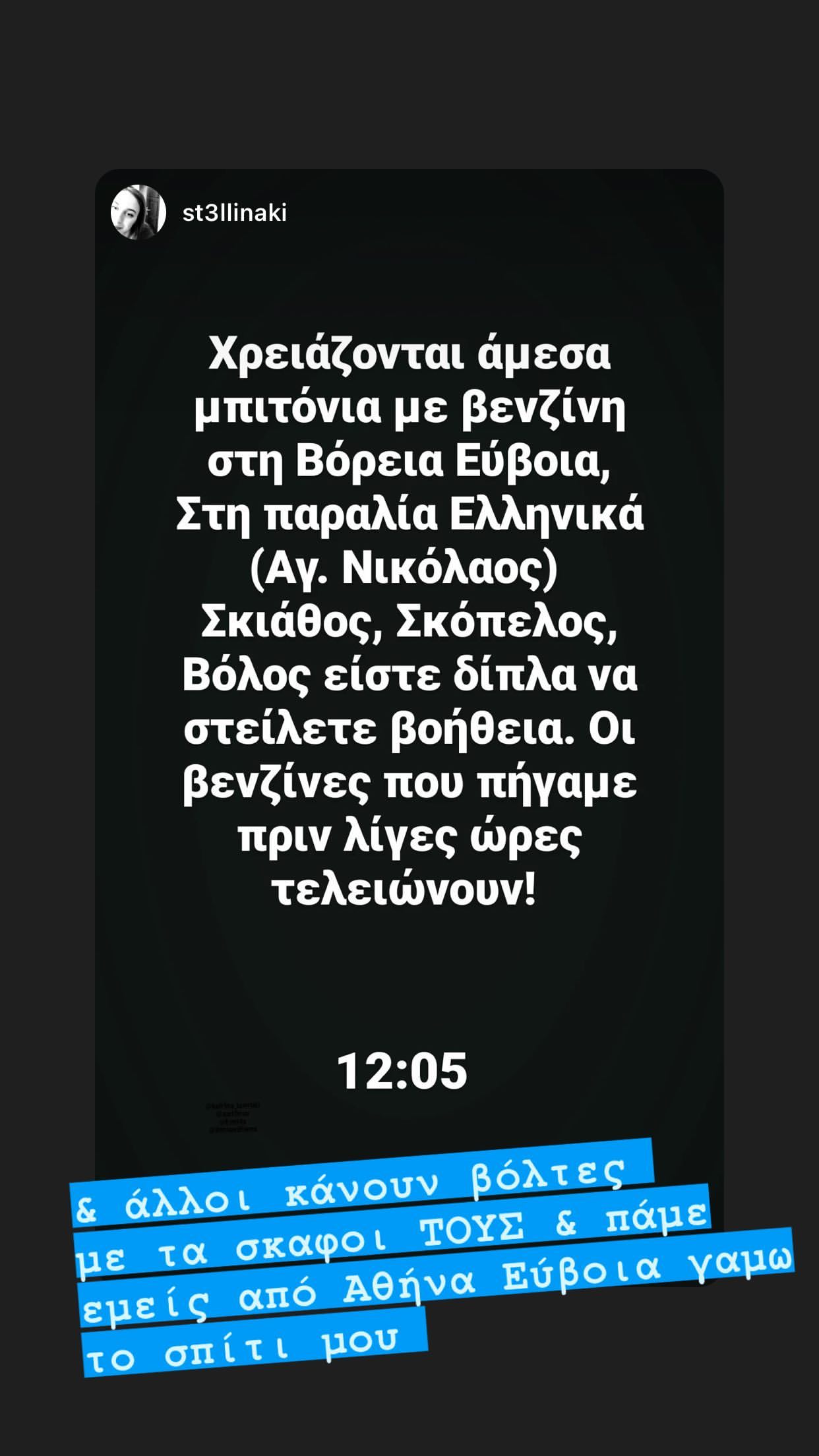 Αναμεσά τους είναι και η Κατερίνα Ζαρίφη, ο Κώστας Αναγνωστόπουλος, η Ιλένια Ουίλιαμς και ο Γιώργος Κατσινόπουλος, οι οποίοι αποφάσισαν να πάνε στο χωριό Ελληνικά της Εύβοιας και να προσφέρουν ένα χέρι βοηθείας στους κατοίκους του νησιού.
