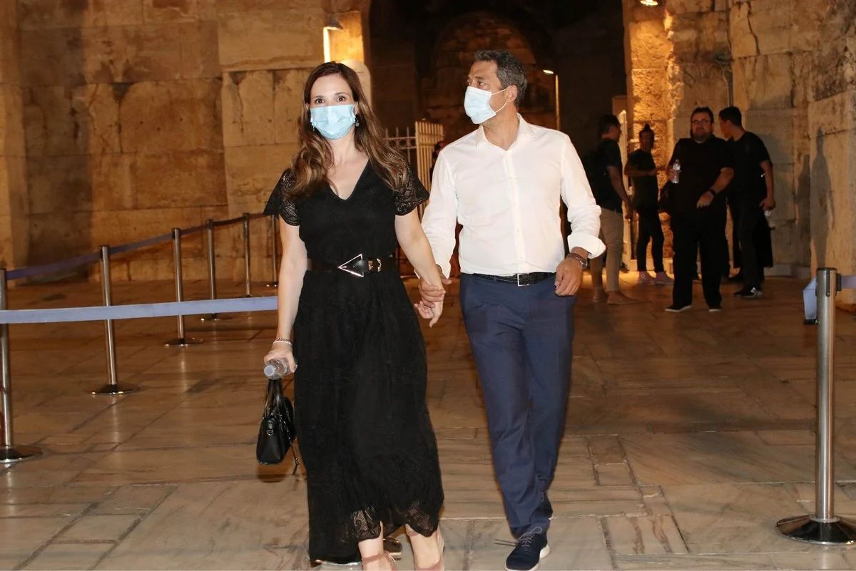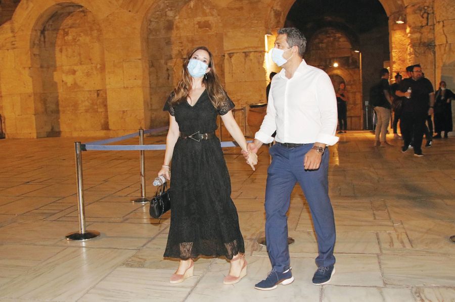 Δημόσια έξοδο για την Ευγενία Δημητροπούλου και τον σύζυγό της Στέλιο Βλατάκη, με την ηθοποιό και τον νευροχειρουργό να καταφθάνουν στο Ηρώδειο φορώντας τις μάσκες τους!
