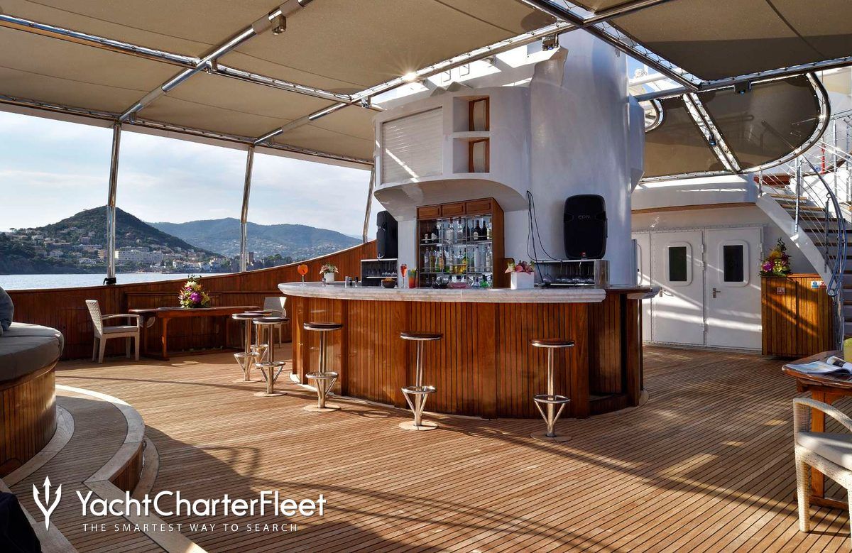 H ιστορική 99μετρη θαλαμηγός «Christina O.», που αγοράστηκε το 1954 από τον Αριστοτέλη Ωνάση, εκτός από τα μυθικά πρόσωπα που έχει φιλοξενήσει, έχει γίνει «πρωταγωνίστρια» στη σειρά «The Crown» και σήμερα νοικιάζεται από billionaires του πλανήτη για πριβέ κρουαζιέρες, πάρτι και γάμους, όπως o γάμος της Χάιντι Κλουμ πριν από τρία χρόνια με τον Τομ Κάουλιτζ στο Κάπρι. Οταν πέθανε ο Αριστοτέλης Ωνάσης, άφησε το γιοτ στην κόρη του Χριστίνα, για να το δωρίσει εκείνη με τη σειρά της στο ελληνικό κράτος προκειμένου να γίνει η προεδρική θαλαμηγός και να μετονομαστεί σε «Αργώ». Το 1998 την αγόρασε ο αείμνηστος εφοπλιστής Τζον Παπανικολάου, που θέλησε να επαναφέρει το ιστορικό όνομά της, να προσθέσει το «O» και να ξοδέψει τουλάχιστον 50.000.000 δολάρια για την ανακαίνισή της. Ωστόσο το σημερινό ιδιοκτησιακό καθεστώς παραμένει μυστήριο, καθώς δεν αποκαλύπτεται ο ιδιοκτήτης του σκάφους που διαθέτει 17 καμπίνες για 34 επιβάτες. Την παράσταση εξακολουθεί να κλέβει στην εξωτερική πισίνα το ψηφιδωτό με τον Μινώταυρο, ένα σπάνιο και αληθινό έργο τέχνης. Με το πάτημα ενός κουμπιού μετατρέπεται σε πίστα για χορό, όπως ακριβώς συνέβη και στο γαμήλιο πάρτι της Μαργαρίτας Χατζηνάσιου και του Peter Weernink.
