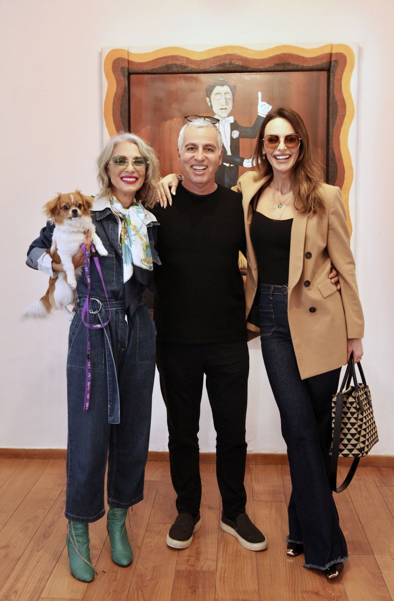 Η Μπέττυ Μαγγίρα και η Ματθίλδη Μαγγίρα βρέθηκαν στα εγκαίνια της έκθεσης ζωγραφικής του στην Γκαλερί “Αγκάθι” για να τον τιμήσουν και να δουν τα έργα του.