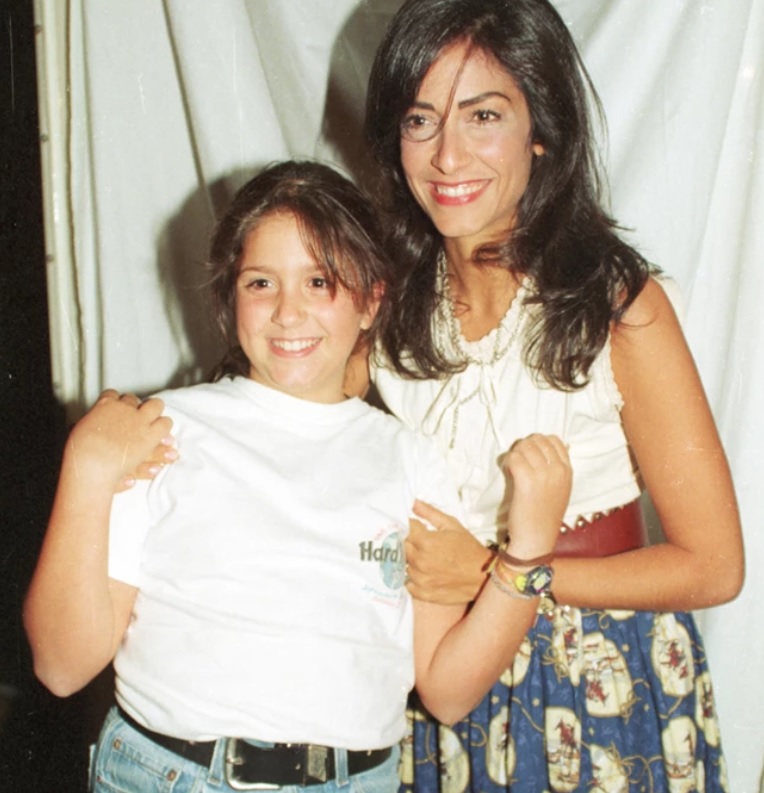 Πίσω στο 1993, η Σοφία Καρβέλα ήταν μόλις 10 ετών και φωτογραφήθηκε φορώντας ένα κλασσικό τζιν παντελόνι, μαύρη ζώνη και ένα λευκό T Shirt μαζί με τη μητέρα της η οποία είχε μακριά σκούρα καστανά μαλλιά και φορούσε μια μακριά φούστα με εμπριμέ μοτίβο και λευκή αμάνικη μπλούζα. Όταν τραβήχτηκε αυτή η εικόνα η Άννα Βίσση ήταν 34 ετών.