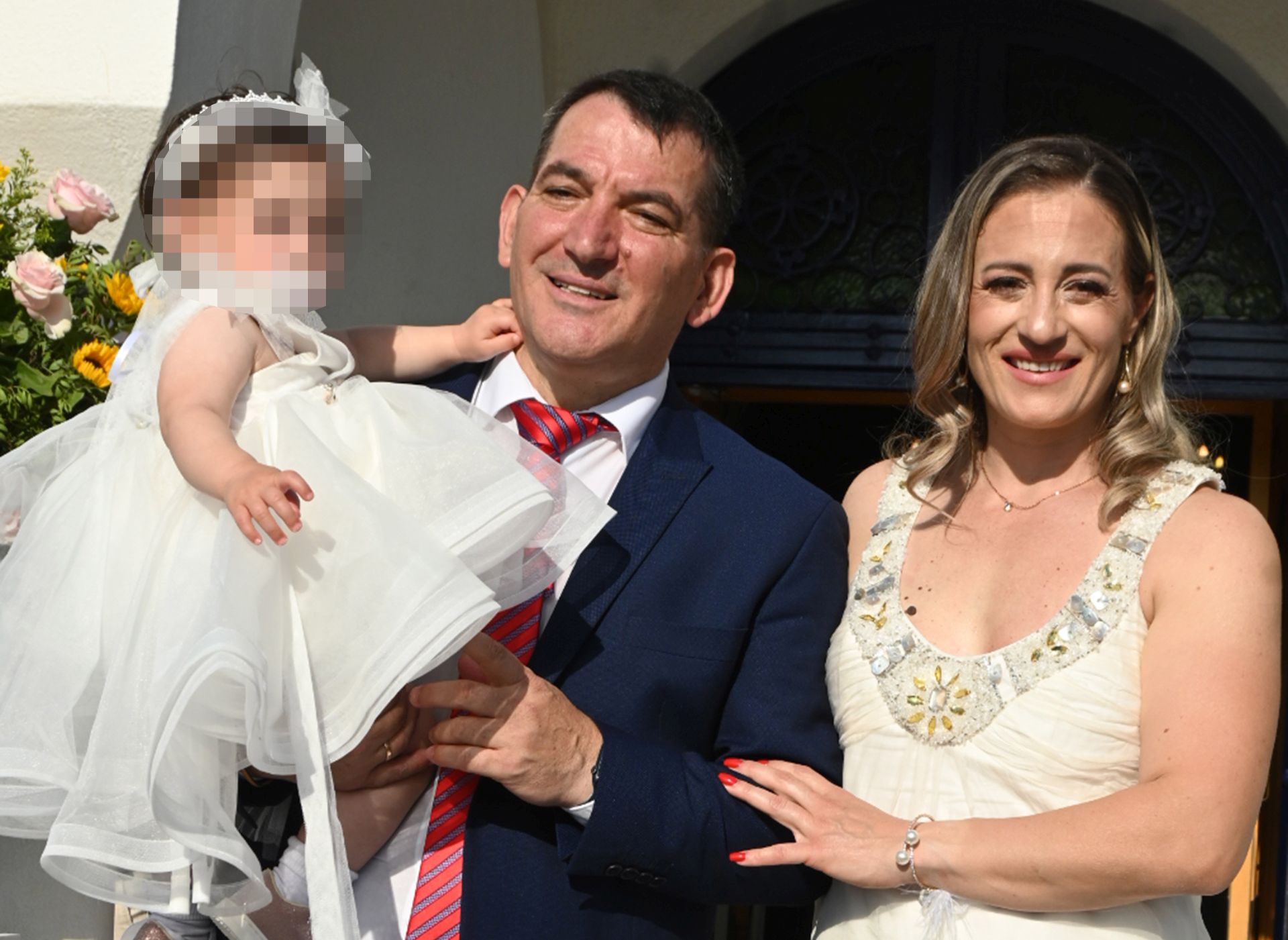 Το ζευγάρι πόζαρε χαμογελαστό στον φακό με τον Πύρρο Δήμα να κρατά στην αγκαλιά του την κόρη του και να λάμπει από ευτυχία.