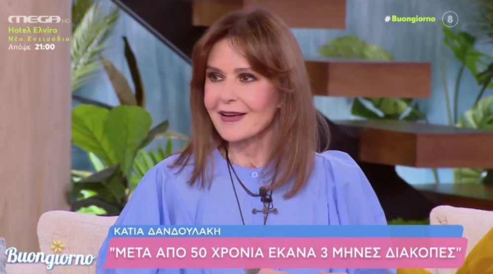 Το πιο σημαντικό απόκτημα της Κάτιας Δανδουλάκη είναι η αποδοχή της από τον κόσμο. Αυτό παραδέχτηκε η καταξιωμένη ηθοποιός στην εκπομπή «Buongiorno» του MEGA, όπου βρέθηκε σήμερα καλεσμένη για μια συνέντευξη «εφ’ όλης της ύλης».