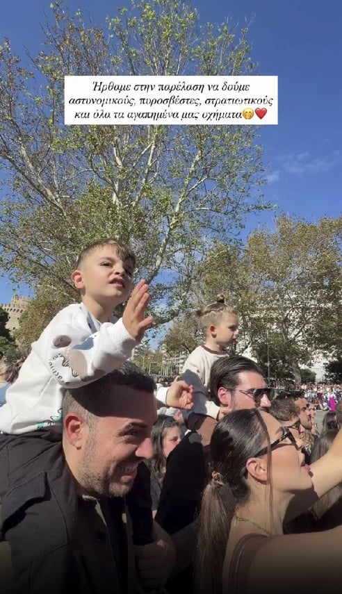 Ο Άκης Πετρετζίκης απόλαυσε την παρέλαση με τον γιο του και την κόρη του και μοιράστηκε με τους διαδικτυακούς του φίλους σχετικά στιγμιότυπα, μέσω instagram stories.