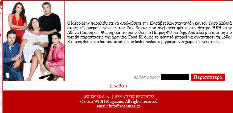 Ενδεικτικά, η θεατρική παράσταση που προμοτάρει το εν λόγω σάιτ και λέει ότι ανεβαίνει «φέτος» στο θέατρο ΗΒΗ, αναφέρεται σε παράσταση που ανέβηκε τη σαιζόν 2009-2010. Γιατί από τότε έχει να ενημερωθεί. Αλλά τα φράγκα, φράγκα.