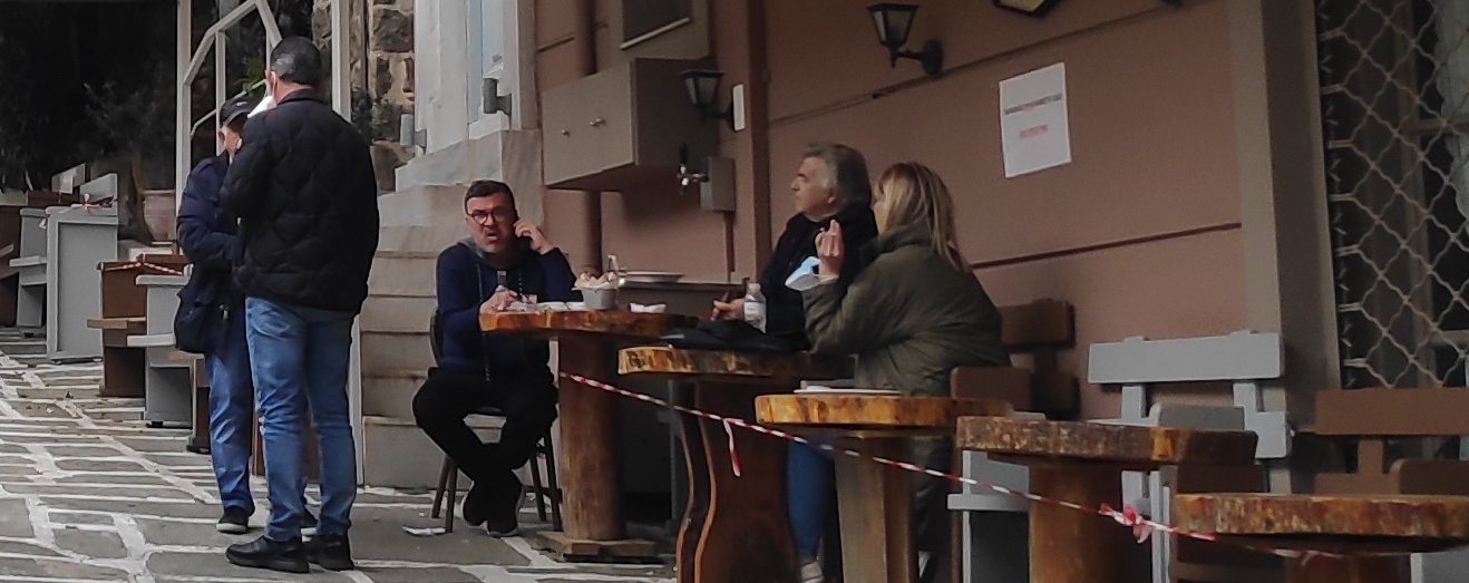 Ο γνωστός δημοσιογράφος φαίνεται να πίνει τσίπουρο σε κατάστημα της Πλάκας που τυπικά είναι κλειστό, ενώ διακρίνεται η παγοθήκη καθώς και πιάτο προφανώς με μεζέδες.