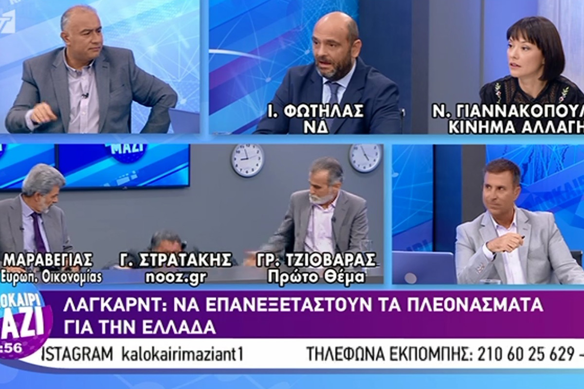 Καθώς οι καλεσμένοι ανέλυαν τις δηλώσεις της Κριστίν Λαγκάρντ που ζήτησε να επανεξεταστεί ο στόχος για πρωτογενές πλεόνασμα 3,5% στην Ελλάδα, ο δημοσιογράφος Γιάννης Στρατάκης έπεσε από την καρέκλα του και «χάθηκε» από το πλάνο. Οι καλεσμένοι στην αρχή τρόμαξαν αλλά έπειτα όλοι αστειεύτηκαν με το περιστατικό ενώ σχολίασαν ότι θα γίνει «viral»!