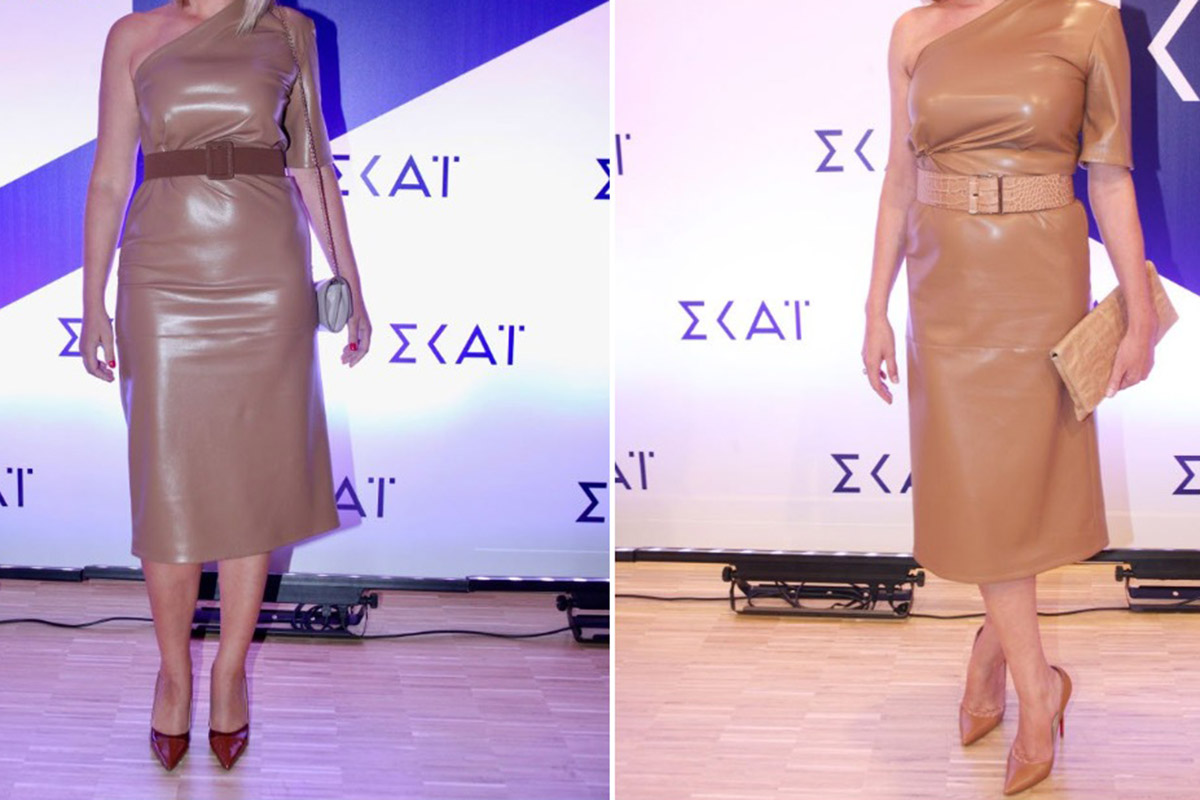 Οι δύο γυναίκες επέλεξαν να φορέσουν ταμπά δερμάτινο φόρεμα της Simona Corsellini, με ένα μανίκι και έναν ώμο έξω. Η ζώνη, η τσάντα και οι γόβες διέφεραν. Πάντως οι γυναίκες κατάφεραν να ξεχωρίσουν στη βραδιά για την σικ εμφάνισή τους.