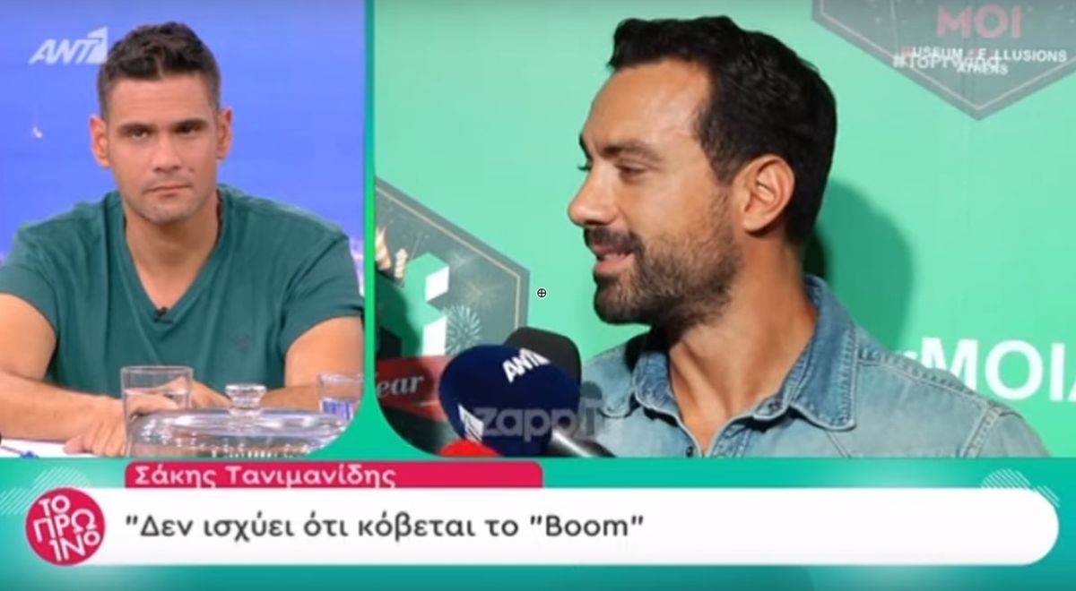 Ενόχληση, αμηχανία και εκνευρισμό προκάλεσε στον Σάκη Τανιμανίδη ερώτηση για τα χαμηλά ποσοστά τηλεθέασης του Boom, με αποτέλεσμα να απαντήσει ειρωνικά. Πιο συγκεκριμένα, δημοσιογράφος τον ρώτησε αν ισχύει ότι έχουν δώσει προθεσμία στο σόου να ανεβάσει τα νούμερα τηλεθέασης μέχρι 18 Οκτωβρίου και εκείνος του είπε «νομίζω ότι είναι 18 Οκτωβρίου 16:15 το απόγευμα, 16:16 πάρε με τηλέφωνο».