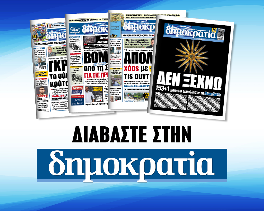 Στην εφημερίδα «δημοκρατία» που κυκλοφορεί αύριο Παρασκευή 4 Οκτωβρίου διαβάστε: