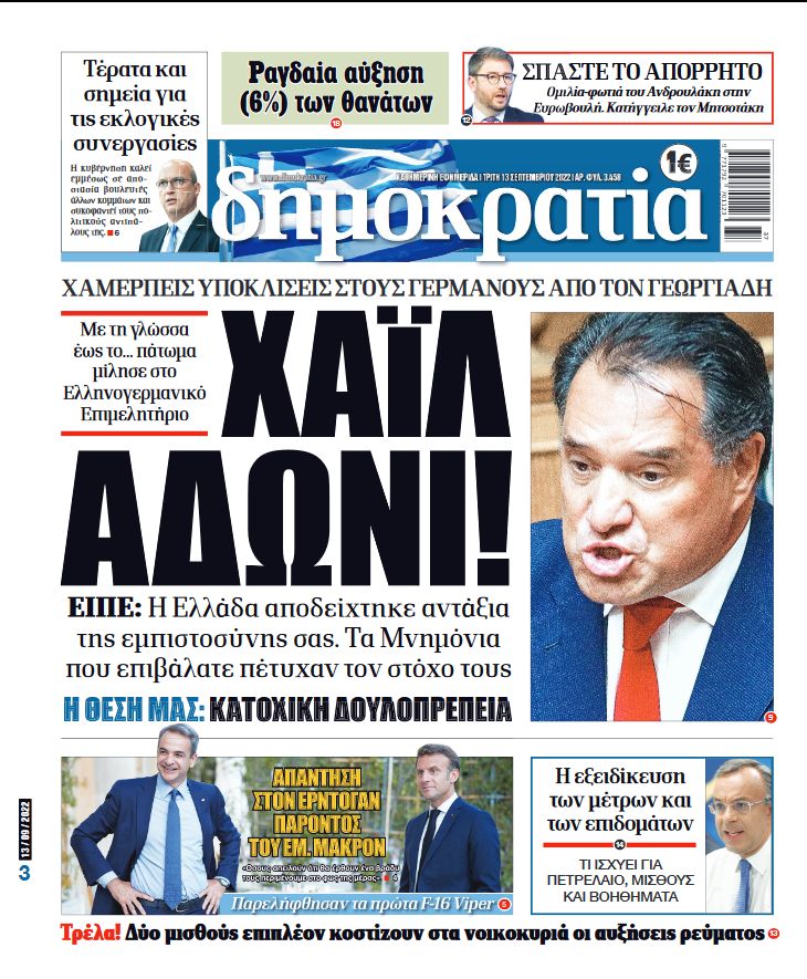 Σήμερα στη «δημοκρατία»: Χαμερπείς υποκλίσεις στους Γερμανούς από τον Γεωργιάδη – Με τη γλώσσα έως το… πάτωμα μίλησε στο Ελληνογερμανικό Επιμελητήριο – Είπε: Η Ελλάδα αποδείχτηκε αντάξια της εμπιστοσύνης σας. Τα Μνημόνια που επιβάλατε πέτυχαν τον στόχο τους – Η θέση μας: Κατοχική δουλοπρέπεια.