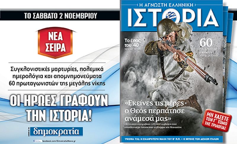 Μετά την επιτυχία του δεύτερου τόμου της τριλογίας «Η Άγνωστη Ελληνική Ιστορία» κυκλοφορεί αύριο, Σάββατο 2/11 με την εφημερίδα «δημοκρατία», το τρίτο τεύχος με τίτλο «Εκείνες τις μέρες ο Θεός περπάτησε ανάμεσά μας».