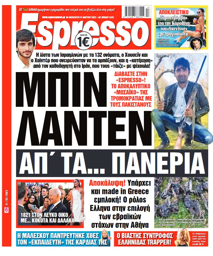 Διαβάστε στην «Espresso»: Η λίστα των Ισραηλινών με τα 132 ονόματα, ο Χουσεΐν και ο Χαϊντέρ που ονειρεύονταν να τα αρπάξουν, και η «κατήχηση» από τον καθοδηγητή στο Ιράν, που τους «τάιζε» με ψίχουλα! – Διαβάστε στην «Espresso» το αποκαλυπτικό «μωσαϊκό» της τρομοκρατίας με τους Πακιστανούς – Αποκάλυψη! – Υπάρχει και made in Greece εμπλοκή! – Ο ρόλος Έλληνα στην επιλογή των εβραϊκών στόχων στην Αθήνα.