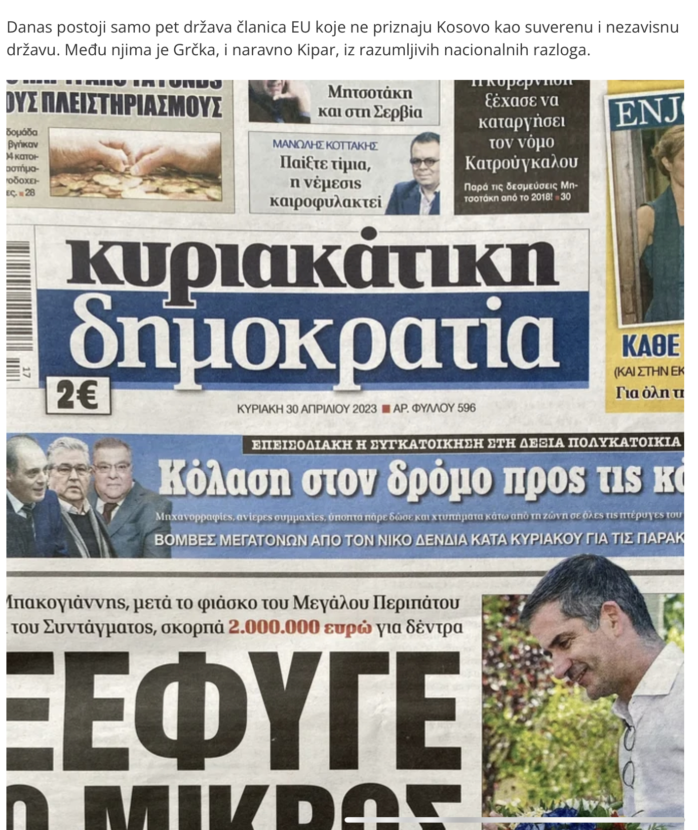 Κύριο θέμα στις μεγαλύτερες σερβικές ιστοσελίδες έχει γίνει το εκπληκτικό άρθρο του Γιώργου Χαρβαλιά, που κατακεραυνώνει τον Μητσοτάκη για την άθλια στάση του κατά της Σερβίας στο θέμα του ψευδοκράτους του Κοσσυφοπεδίου. Πρόκειται για το άρθρο του κορυφαίου Έλληνα αναλυτή, στην κυριακάτικη Δημοκρατία που κυκλοφορεί σήμερα.