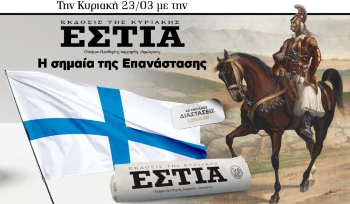 Στις 23 Μαρτίου η ΕΣΤΙΑ της Κυριακής τιμά την επέτειο της Παλιγγενεσίας και προσφέρει την σημαία της επανάστασης που υψώθηκε από την οικογένεια των Κολοκοτρωναίων.