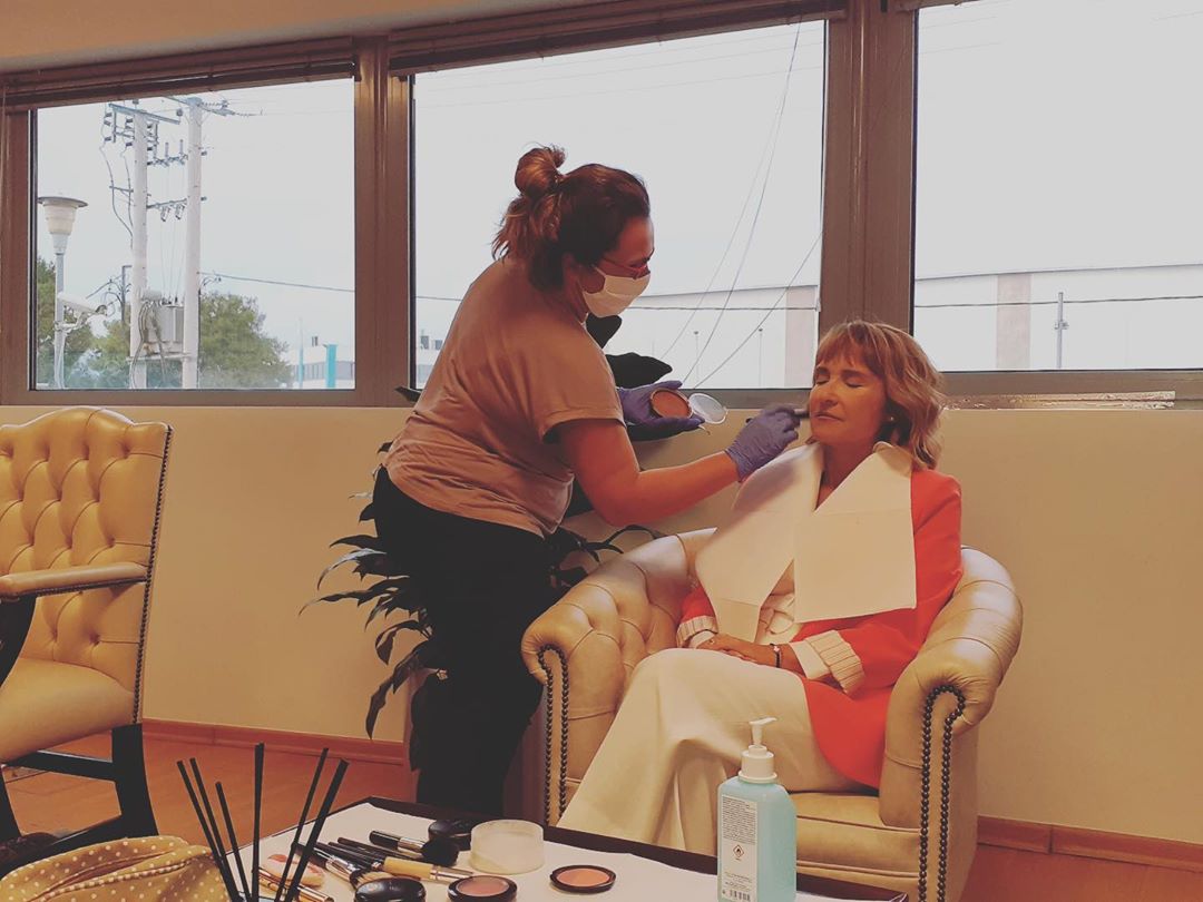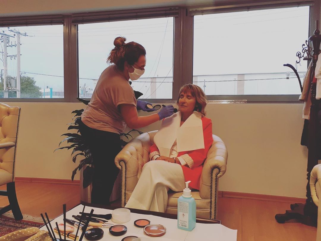 Η Μάρα Ζαχαρέα δημοσίευσε φωτογραφίες της στο Instagram από το στούντιο όπου η μακιγιέζ φοράει γάντια και μάσκα, ενώ δίπλα τους υπάρχει και αντισηπτικό.