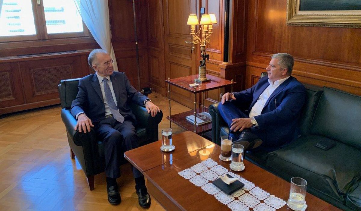 Μετά την συνάντηση του με τον Πρόεδρο της Ελληνικής Ένωσης Τράπεζων και Πρόεδρο της Τράπεζας Πειραιώς, ο νέος Περιφερειάρχης Αττικής και Πρόεδρος της ΚΕΔΕ, κ. Γιώργος Πατούλης, επισκέφθηκε προσφάτως τον Πρόεδρο της Alpha Bank, Καθηγητή Βασίλειο Ράπανο.