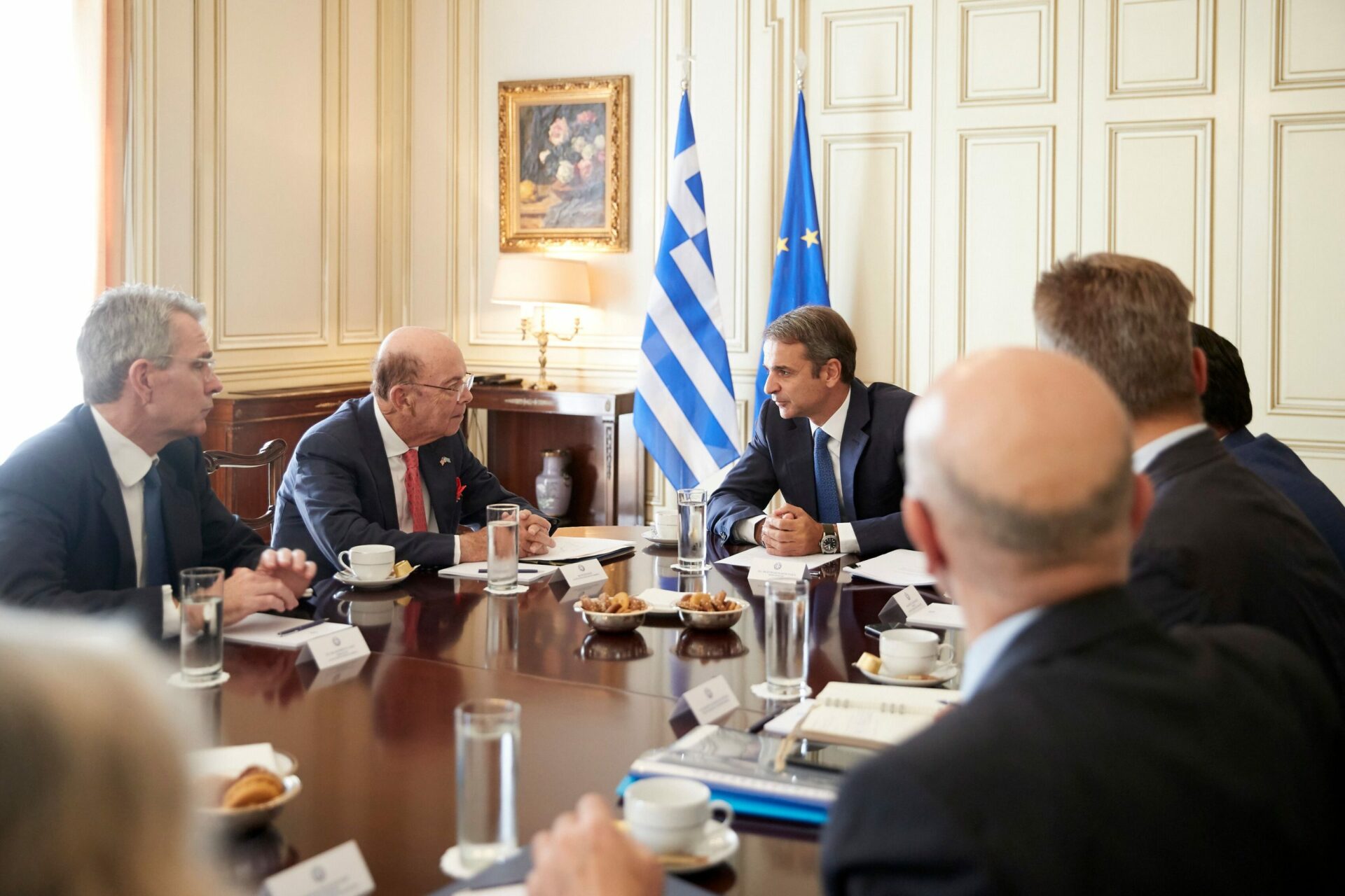 Οι μεγάλες επενδυτικές ευκαιρίες στη χώρα μας και η στενότερη συνεργασία Ελλάδας – ΗΠΑ στον εμπορικό τομέα, βρέθηκαν στο επίκεντρο της συνάντησης του Πρωθυπουργού Κυριάκου Μητσοτάκη με τον Υπουργό Εμπορίου των ΗΠΑ, Γουίλμπουρ Ρος.