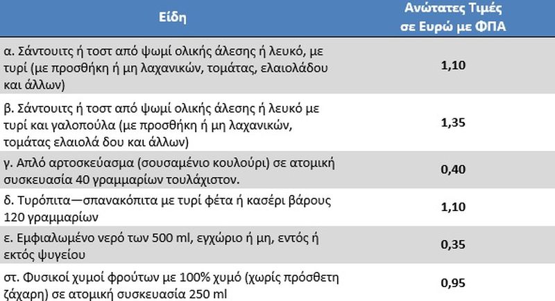Έφτασε η μεγάλη μέρα για την επιστροφή στα θρανία, και το υπουργείο Ανάπτυξης εξέδωσε ανακοίνωση σύμφωνα με την οποία διευκρινίζει τα προϊόντα με ανώτατη τιμή που προβλέπεται να πωλούνται σε κυλικεία δημόσιων και ιδιωτικών σχολείων.
