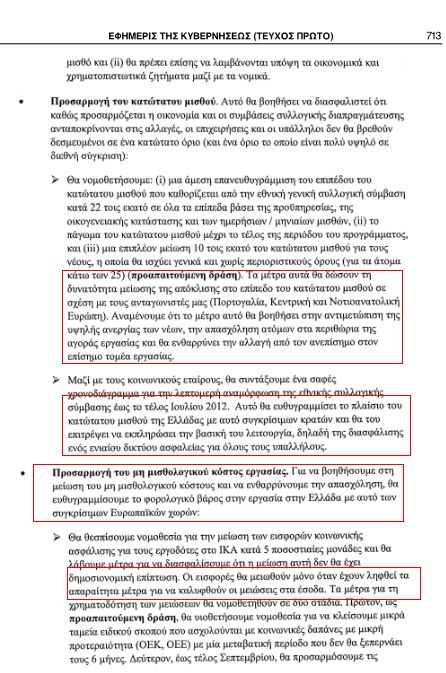 «Τα μέτρα αυτά θα δώσουν τη δυνατότητα μείωσης της απόκλισης στο επίπεδο του κατώτατου μισθού σε σχέση με τους ανταγωνιστές μας (Πορτογαλία, κεντρική και νοτιοανατολική Ευρώπη)».