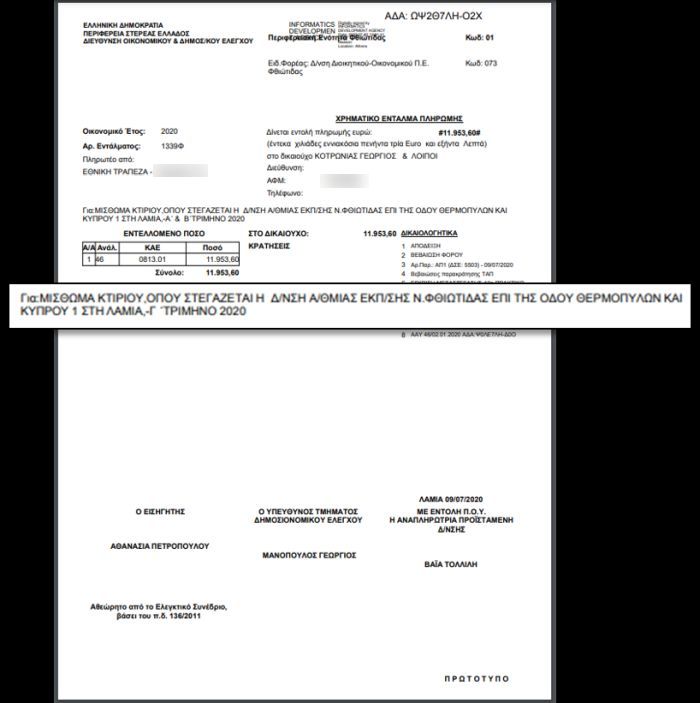 Το συγκεκριμένο κτίριο, όπου στεγάζει και το πολιτικό του γραφείο, το μισθώνει σε υπηρεσία του δημοσίου και συγκεκριμένα στη Διεύθυνση Πρωτοβάθμιας Εκπαίδευσης Ν. Φθιώτιδας!