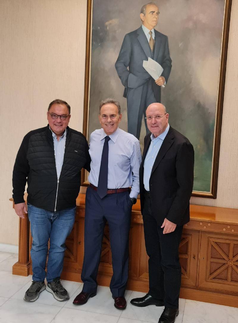 Πρώτη εθιμοτυπική επίσκεψη του νεοεκλεγέντα δημάρχου Φιλοθέης-Ψυχικού Μπάμπη Μπονάτσου, παρουσία του προέδρου του Ιδρύματος «Κωνσταντίνος Καραμανλής» καθηγητή, Κωνσταντίνου Αρβανιτόπουλου και του μέλους, Νίκου Παχύλα.