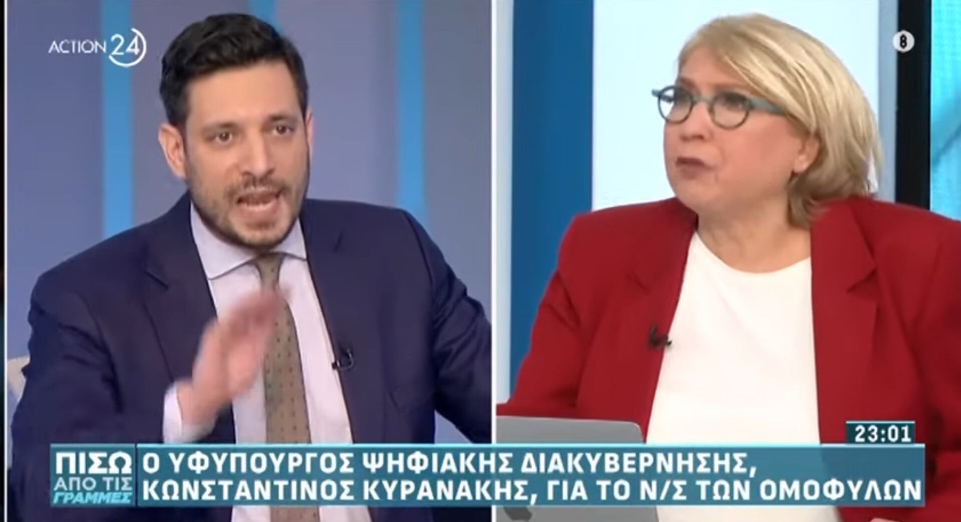 Στη συγκεκριμένη περίπτωση τώρα, ο υφυπουργός Κυρανάκης αρνήθηκε πεισματικά να απαντήσει στο ερώτημα της Ελένης Καλογεροπούλου για το τι θα πράξει κατά την ψήφιση του αμφιλεγόμενου νομοσχεδίου. Με αποτέλεσμα να ακολουθήσει σύρραξη σε ζωντανή μετάδοση.