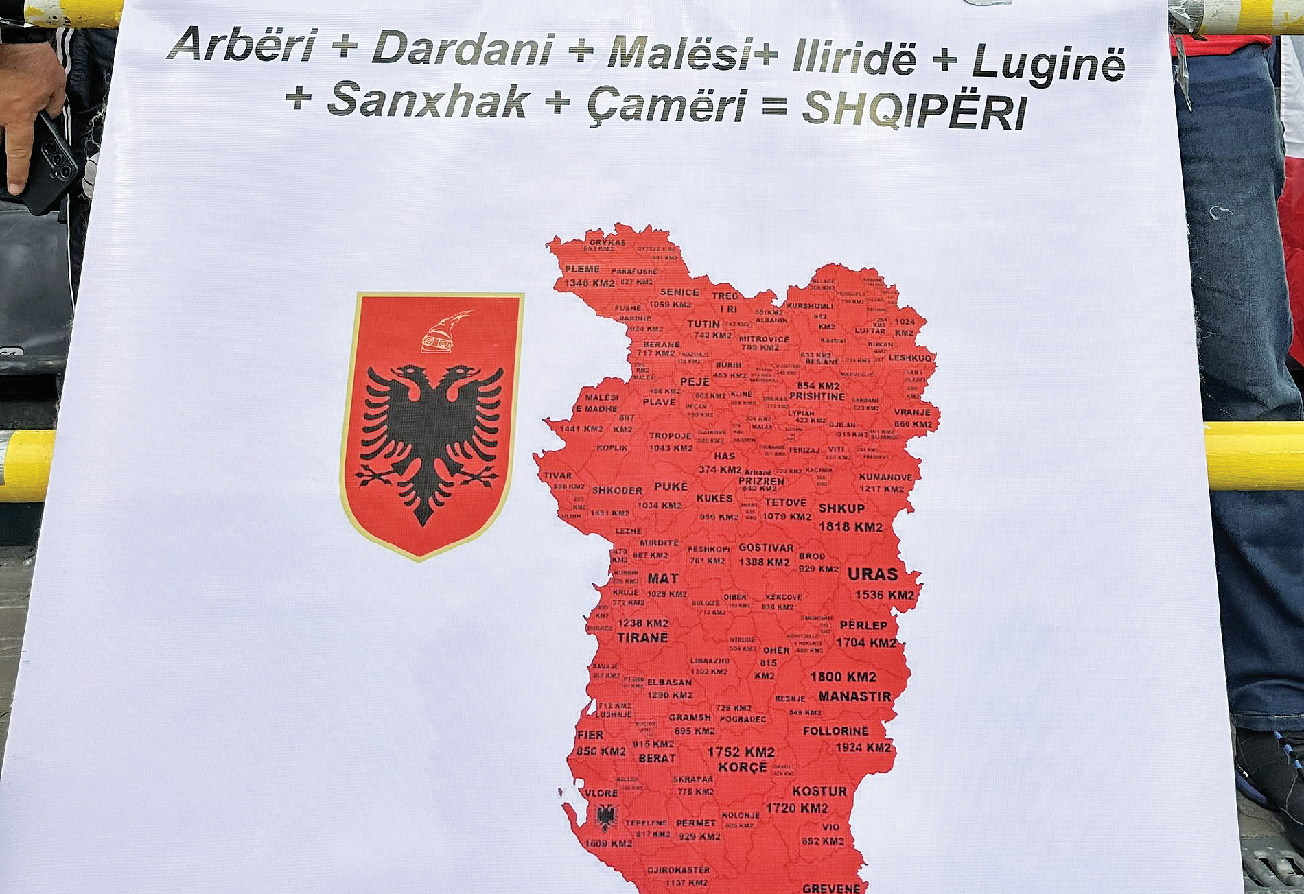 Αλβανοί που πήγαν να παρακολουθήσουν τους αγώνες της εθνικής τους ποδοσφαιρικής ομάδας στο Euro, που διοργανώνεται από τη Γερμανία, κυκλοφορούν με μπλουζάκια της «Μεγάλης Αλβανίας». Πάνω στα μπλουζάκια υπάρχουν χάρτες που περιλαμβάνουν την Κέρκυρα, τα Ιωάννινα, την Πρέβεζα κι άλλα τμήματα της Ελλάδας.