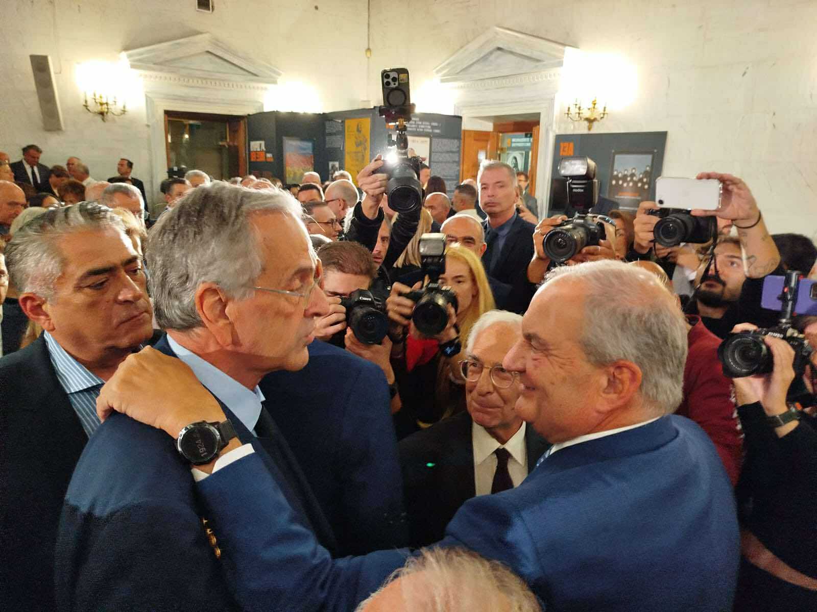 Ιδιαίτερη στιγμή στην Παλαιά Βουλή αποτέλεσε ο θερμός εναγκαλισμός των δύο πρώην πρωθυπουργών. Εικόνα με ισχυρό συμβολισμό, που μπορεί να εκληφθεί ως μήνυμα ενότητας ανάμεσα στα δύο ιστορικά στελέχη της παράταξης στην τρέχουσα πολιτική συγκυρία.