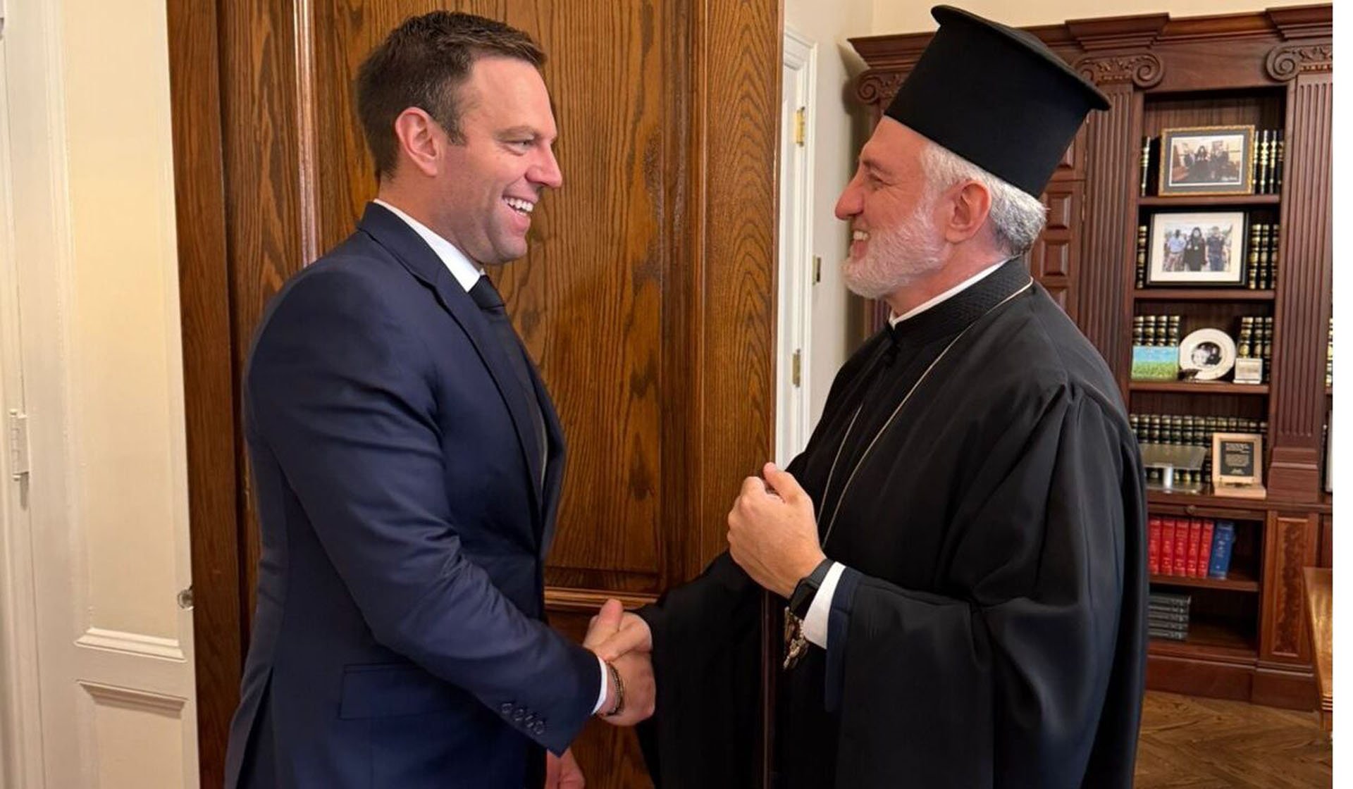 Με τον Αρχιεπίσκοπο Αμερικής Ελπιδοφόρο συναντήθηκε ο Στέφανος Κασσελάκης, στη Νέα Υόρκη.