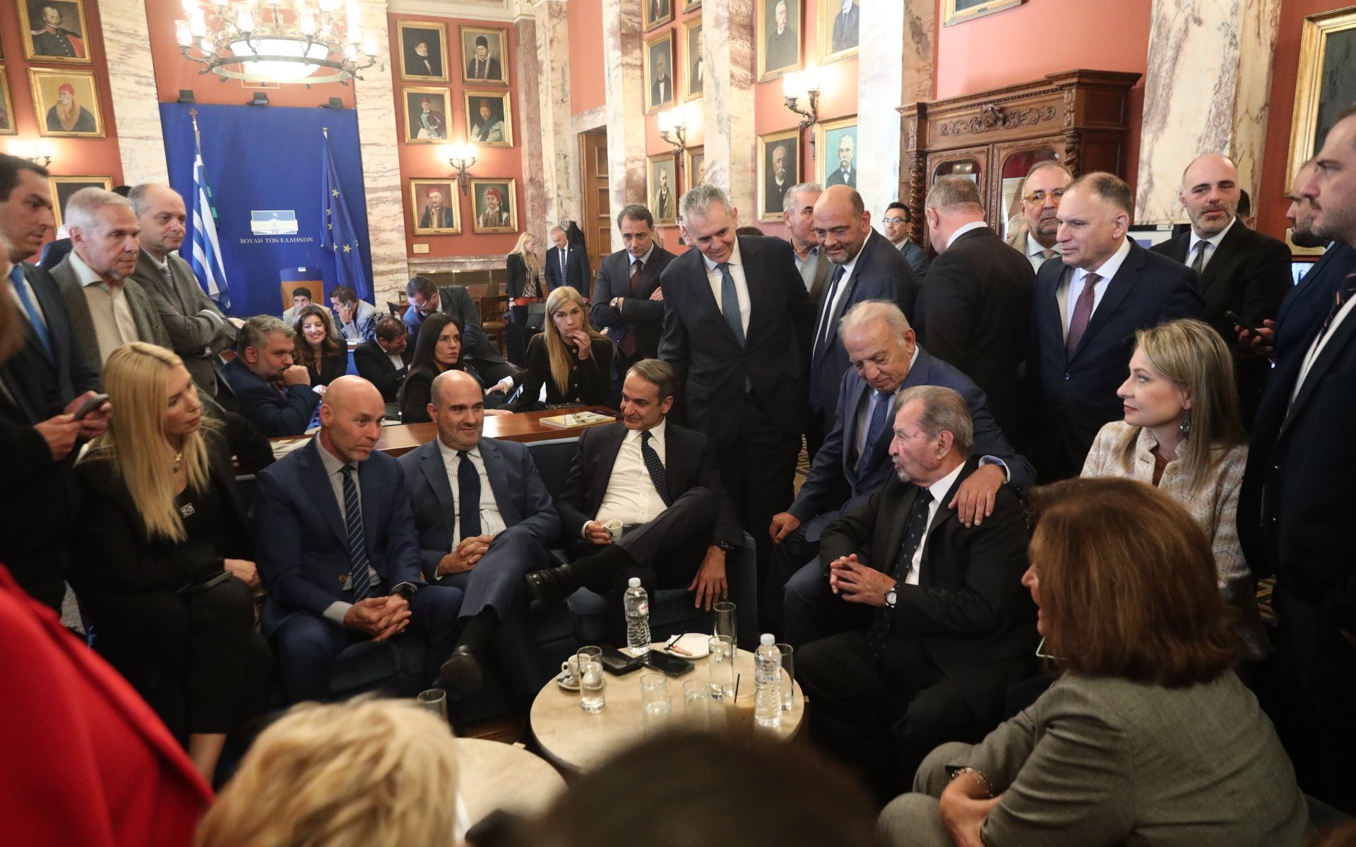 Ο Κυριάκος Μητσοτάκης κέρασε καφέ τους «γαλάζιους» στον Εντευκτήριο της Βουλής, όπως το είχε προαναγγείλει την Πέμπτη. Ο πρωθυπουργός συνομίλησε με μέλη της ΚΟ της Νέας Δημοκρατίας σε χαλαρό και εύθυμο κλίμα.