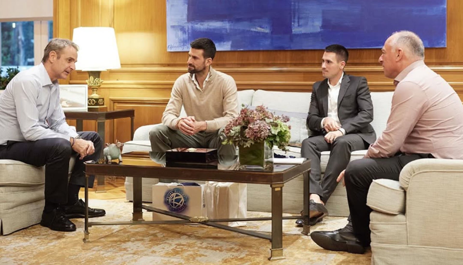 «Σήμερα το απόγευμα υποδέχθηκα στο γραφείο μου τον θρύλο του τένις Νόβακ Τζόκοβιτς, τον αδερφό του Τζόρτζε και τον πρόεδρο της ελληνικής φίλαθλης ομοσπονδίας αντισφαίρισης Θοδωρή Γκλαβά. Συζητήσαμε για το πώς θα ανεβάσουμε το ελληνικό τένις ακόμα πιο ψηλά, μετά και το εξαιρετικά επιτυχημένο Hellenic championship ATP 250».