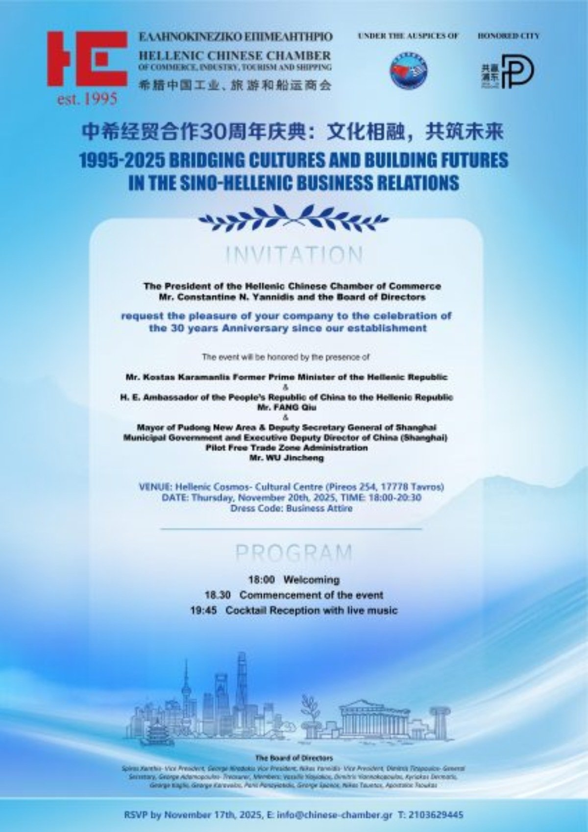 «Αγαπητά μέλη του Διοικητικού Συμβουλίου και μέλη του Ελληνοκινεζικού Εμπορικού, Βιομηχανικού, Τουριστικού & Ναυτιλιακού Επιμελητηρίου,