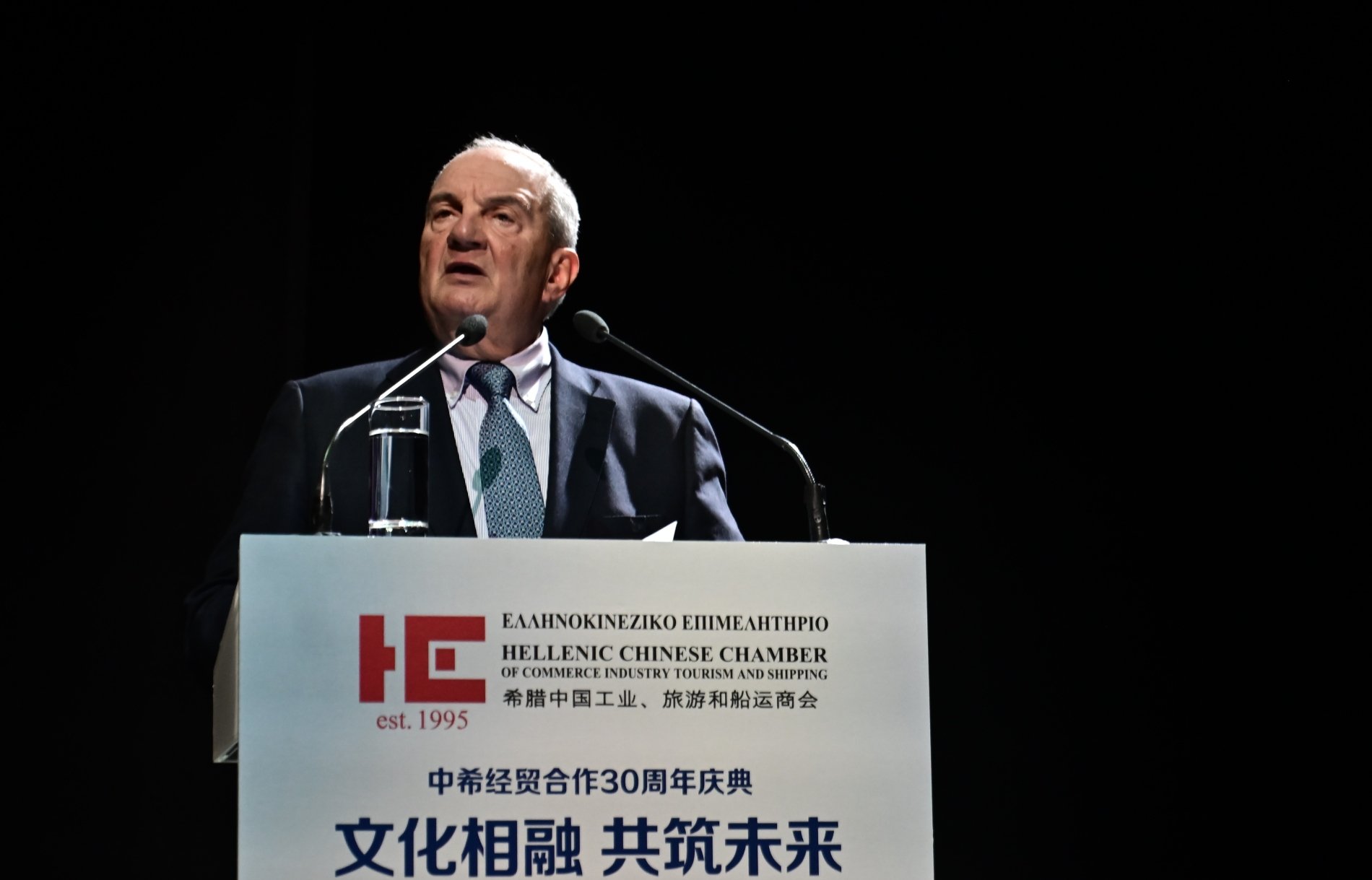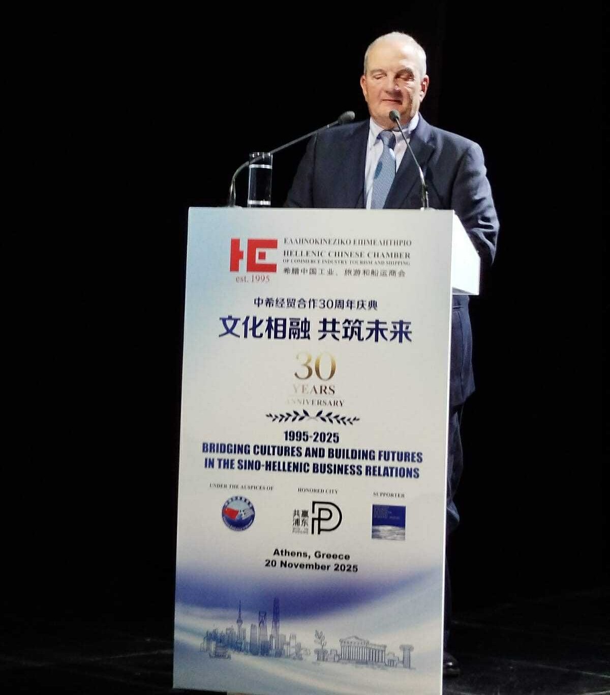 Η δυναμική που απέκτησαν εκείνη την εποχή οι ελληνοκινεζικές σχέσεις προσέφερε πολλές ευκαιρίες. Συνάντησε, όμως, και συναντά και αντικειμενικές δυσκολίες. Μπορεί να υπάρχουν σημαντικές διαφορές μεταξύ Ελλάδας και Κίνας, κυρίως ως προς τα μεγέθη, αλλά και την ένταξη σε διαφορετικούς γεωπολιτικούς σχηματισμούς, υπάρχει όμως αμοιβαίος σεβασμός, ο οποίος πηγάζει και από τις πανάρχαιες καταβολές των πολιτισμών μας. Η δουλειά που κάνει αυτό το Επιμελητήριο τα τελευταία 30 χρόνια είναι σημαντική, όχι μόνο από επιχειρηματική άποψη, αλλά και σε σχέση με την εξωστρέφεια της Ελλάδας και τη θέση της στην περιοχή. Οι σχέσεις Ελλάδας-Κίνας παράγουν αμοιβαία οφέλη. Με κύριο πυλώνα τις δράσεις και τις πρωτοβουλίες στο ναυτιλιακό τομέα, μπορούμε να είμαστε αισιόδοξοι για το μέλλον.»