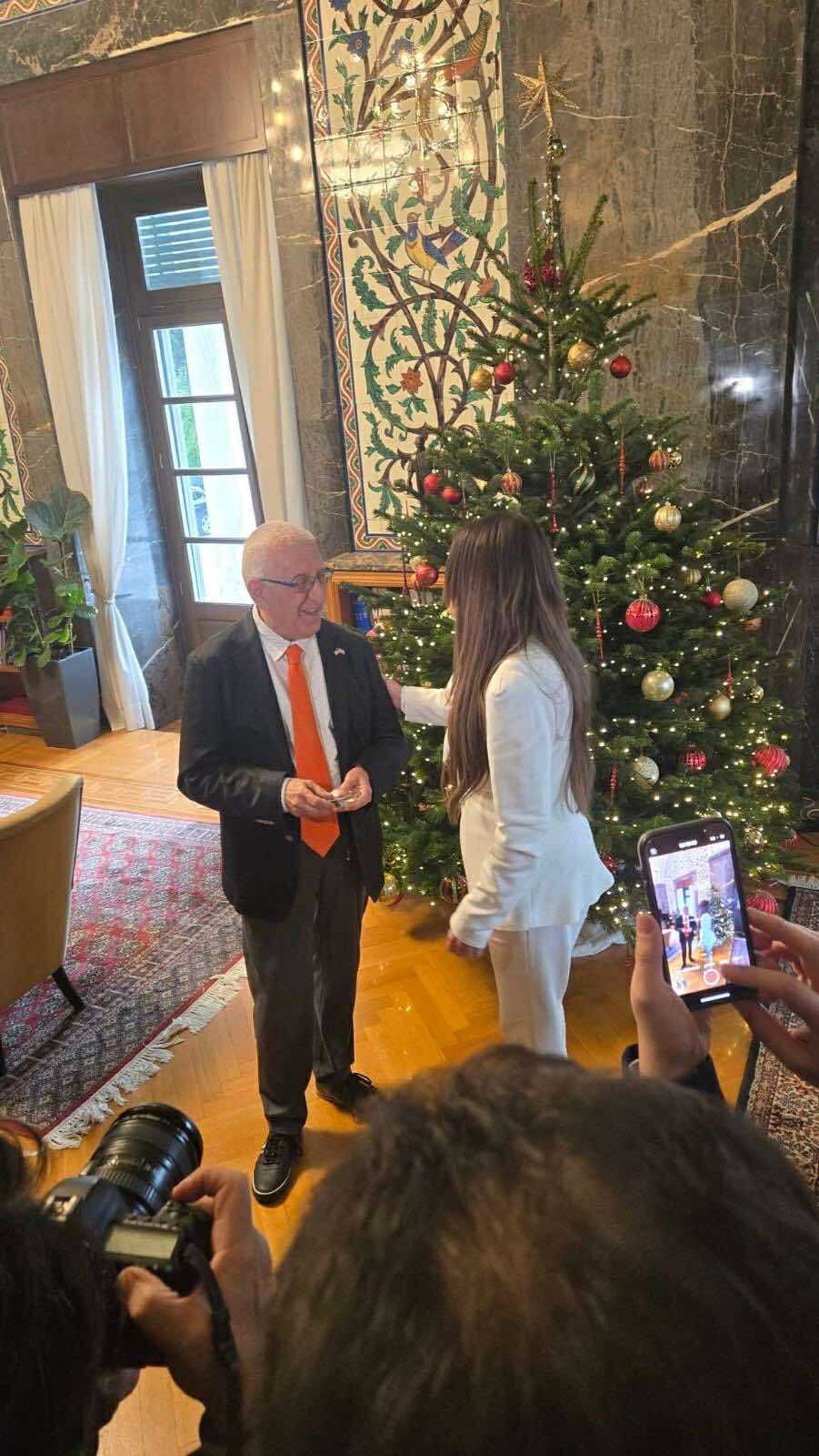 Είχε επίσης την ευκαιρία να δει και την εορταστική όψη της Βουλής, καθώς μόλις είχαν ολοκληρωθεί οι χριστουγεννιάτικοι στολισμοί.