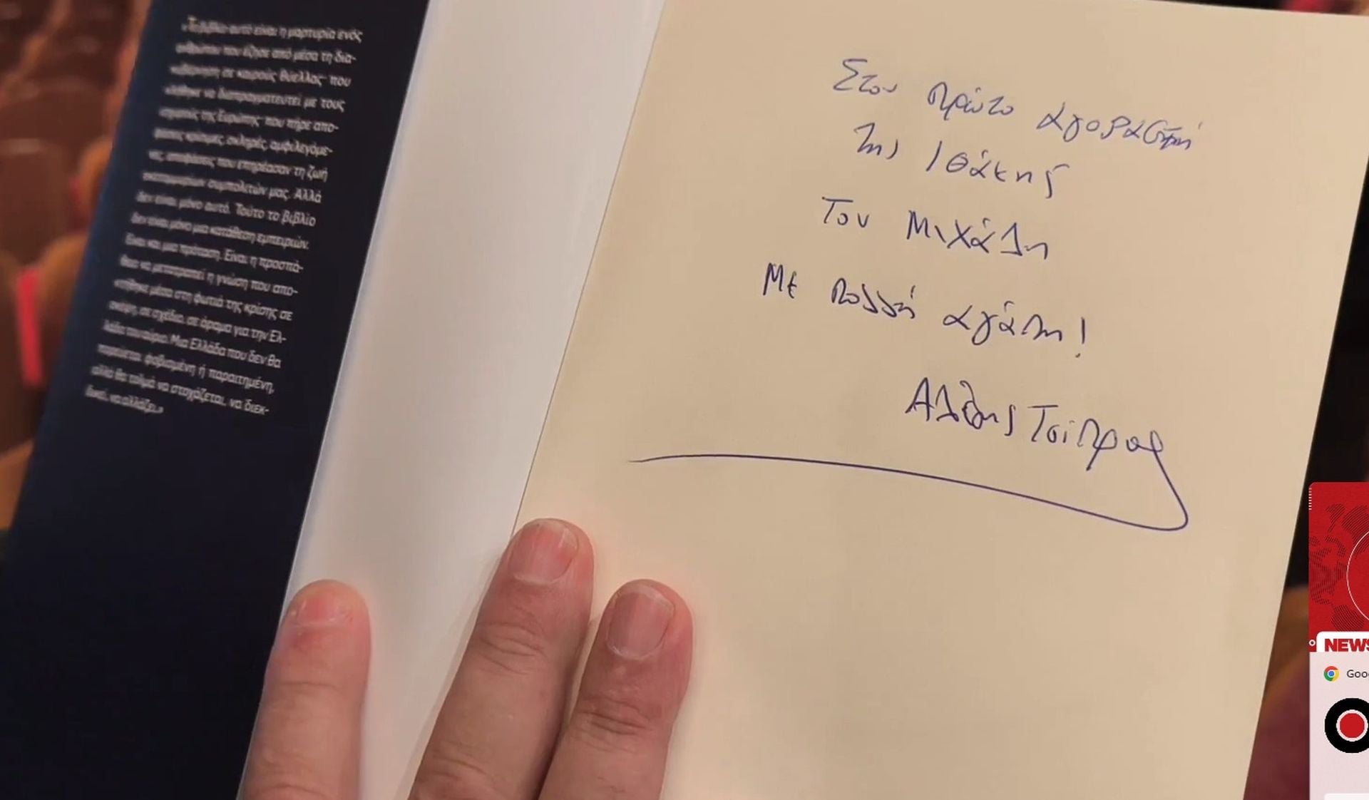 O άνθρωπος που ταξίδεψε από τα Τρίκαλα στην Αθήνα για να αγοράσει πρώτος το βιβλίο του Αλέξη Τσίπρα «Ιθάκη» βρέθηκε το βράδυ της Τετάρτη στο «Παλλάς» και στην παρουσίαση και έλαβε μια ιδιαίτερη αφιέρωση από το πρώην πρωθυπουργό.