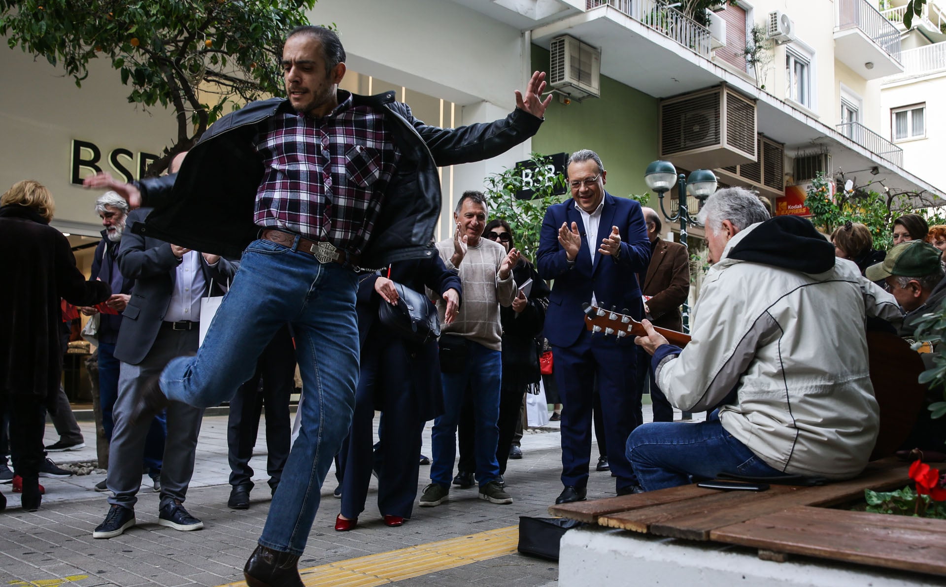 Εκεί βρήκε την ευκαιρία και για ολίγη διασκέδαση, χτυπώντας παλαμάκια σε μουσικό του δρόμου.