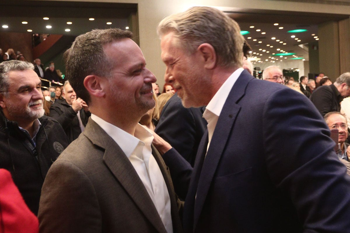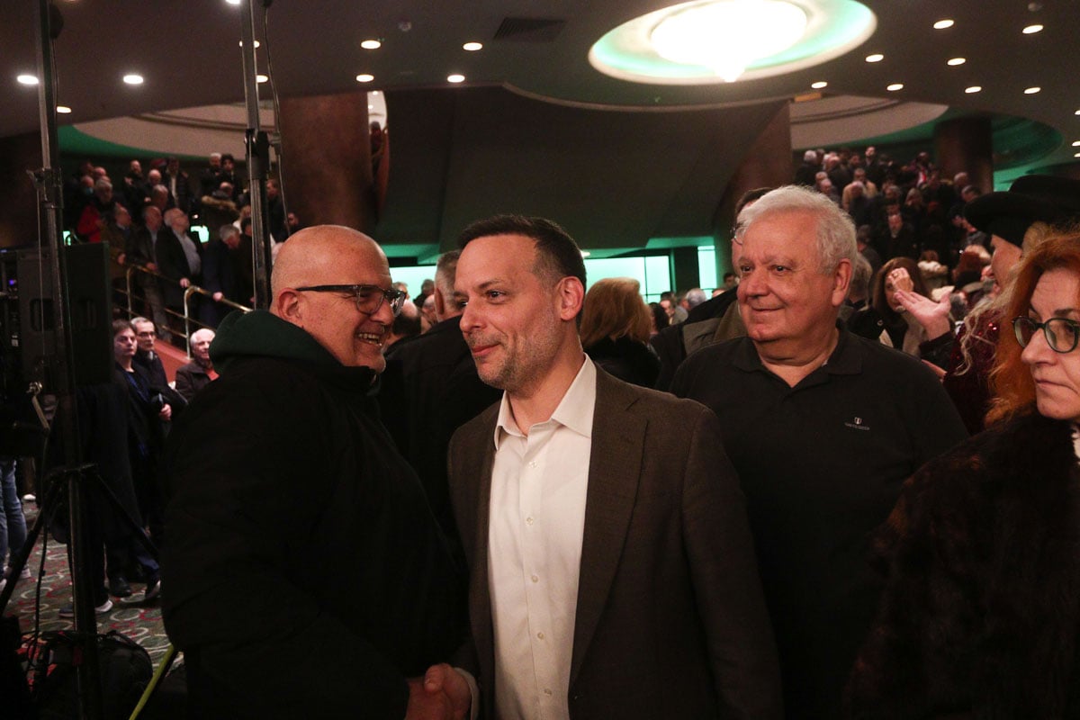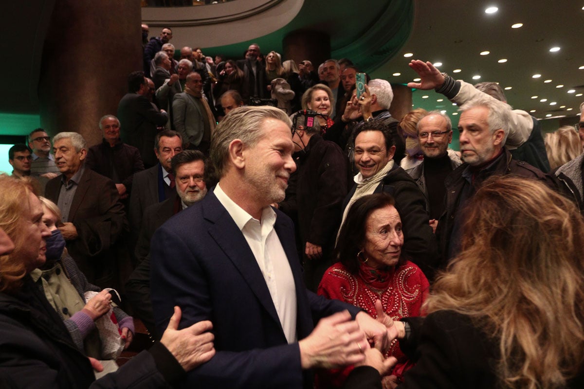 Εκεί και ο εκ των ιστορικών στελεχών Κώστας Σκανδαλίδης, η Λούκα Κατσέλη, η Άννα Νταλάρα, ο Γιώργος Νικητιάδης, ο Χρήστος Πρωτόπαππας, η Άννα Διαμαντοπούλου, ο Παύλος Χρηστίδης, οι δήμαρχοι Αθηναίων και Πειραιά και πλήθος κόσμου που γέμισε ασφυκτικά τον χώρο.