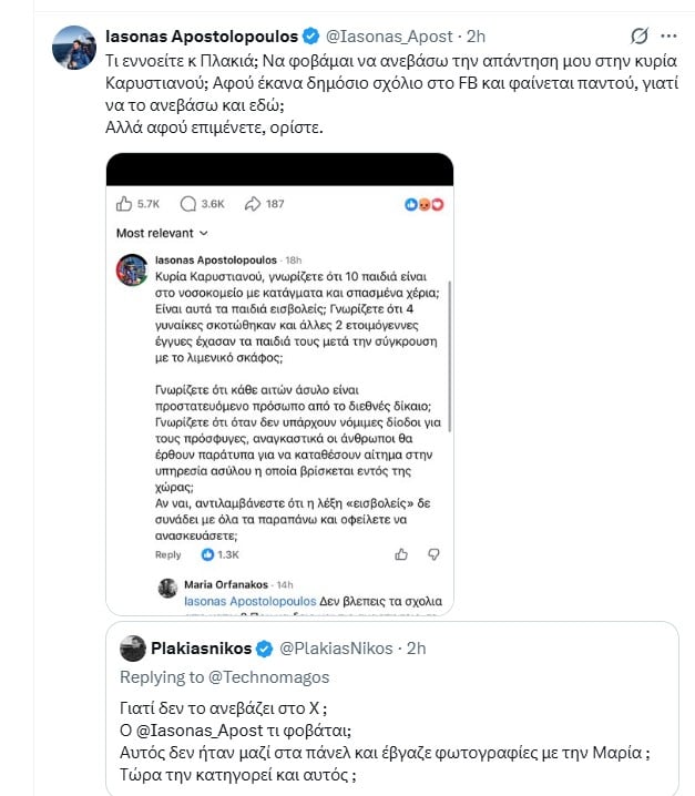 Και αναρωτήθηκε γιατί δεν το ανέβασε και στο X, λέγοντας: «Αυτός δεν ήταν μαζί στα πάνελ και έβγαινε φωτογραφίες με τη Μαρία; Τώρα την κατηγορεί και αυτός;».