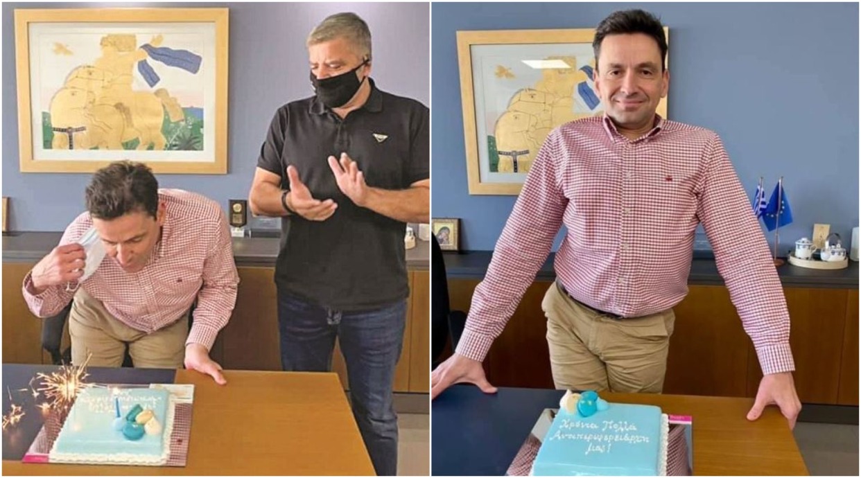 Τη Δευτέρα, όμως, ο Γιώργος Πατούλης έκανε έκπληξη στον αντιπεριφερειάρχη των Οικονομικών του, Νίκο Πέππα. Βλέπετε, συνεργάτες του αγόρασαν τούρτα για τα γενέθλια του αντιπεριφερειάρχη και φίλου του Γιώργου Πατούλη και όλοι μαζί, αφού πήγαν στο γραφείο του, του ζήτησαν να σβήσει τα κεράκια, συνοδεία χαράς και επιφωνημάτων.