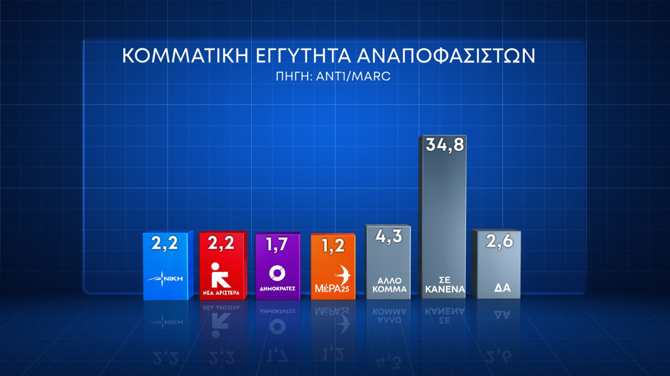 Μεγάλο πρόβλημα στο εσωτερικό της Νέας Δημοκρατίας «έδειξε» η τελευταία δημοσκόπηση της εταιρείας Marc για λογαριασμό του ANT1, που παρουσιάστηκε στο κεντρικό δελτίο ειδήσεων του σταθμού.