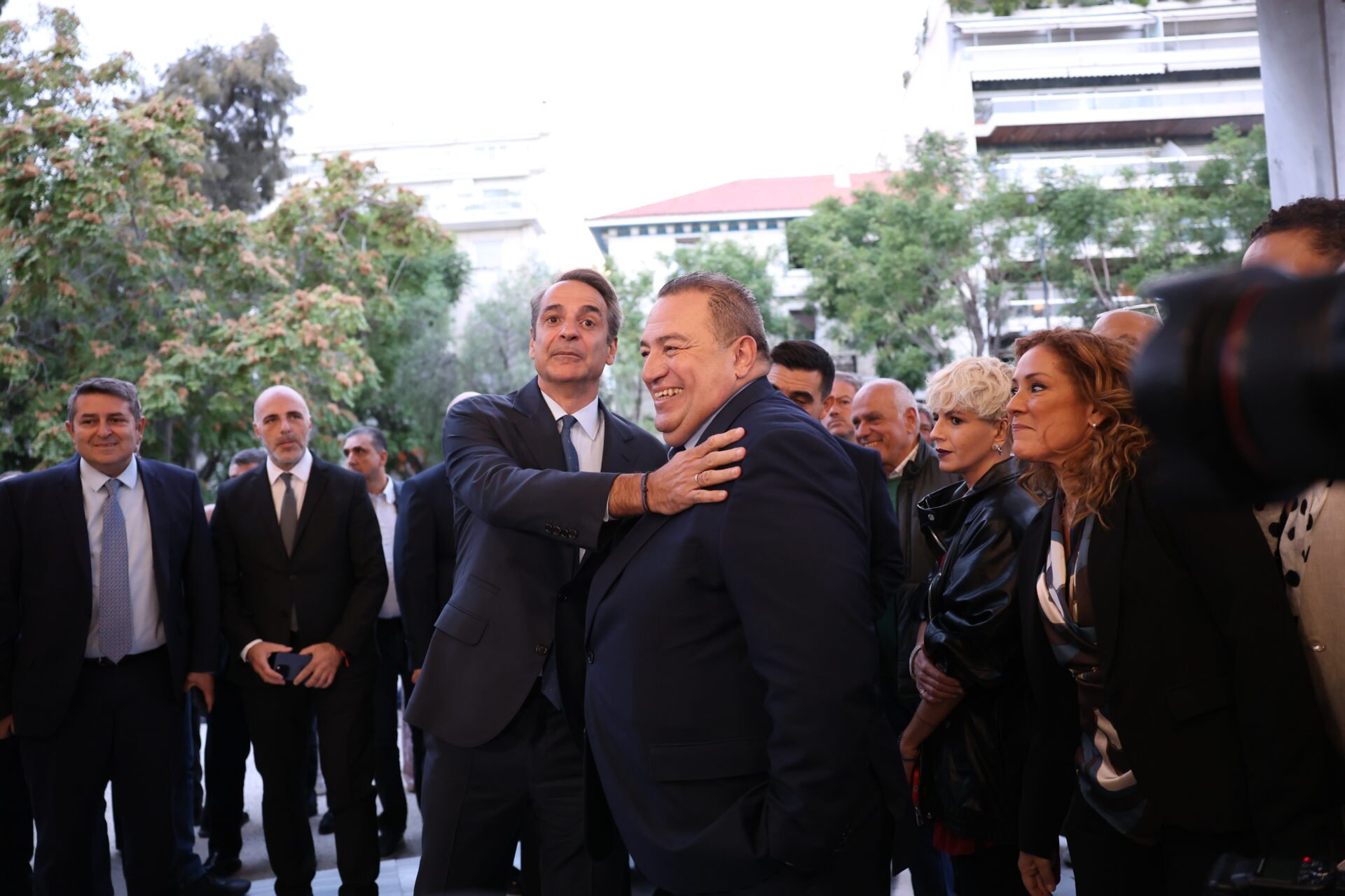 Χειραψία του πρωθυπουργού με τον Κώστα Καραμανλή.
