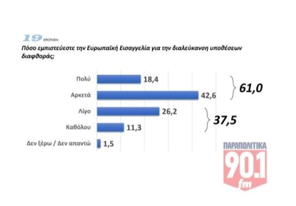 Στην Ευρωπαϊκή Εισαγγελία δίνει ψήφο εμποστοσύνης το 61%